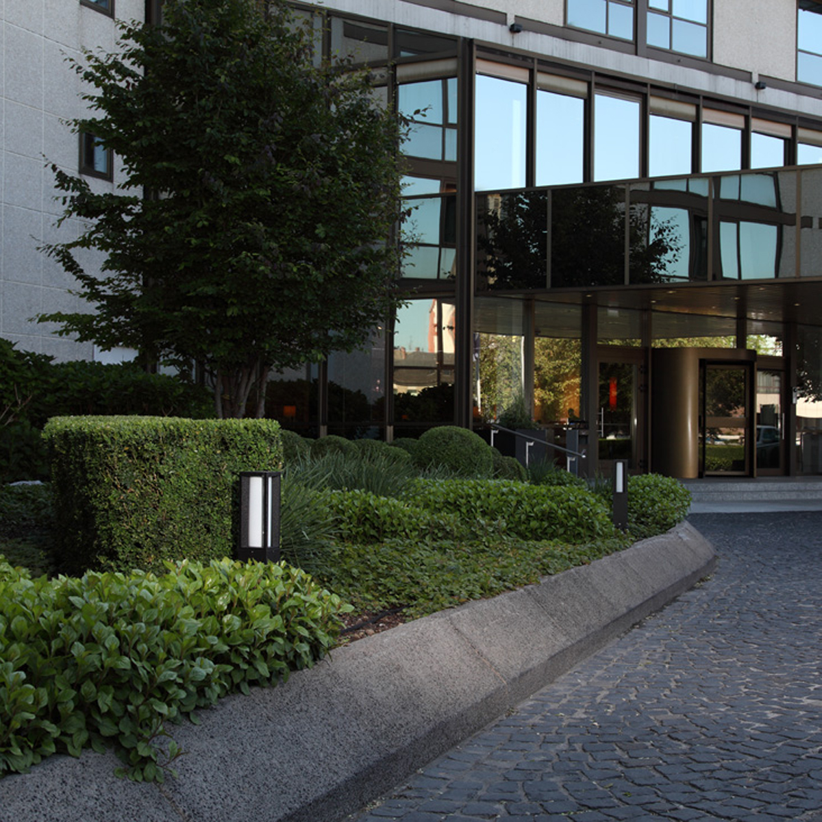 - Moderne Sockelleuchte mit geometrischer Linienführung