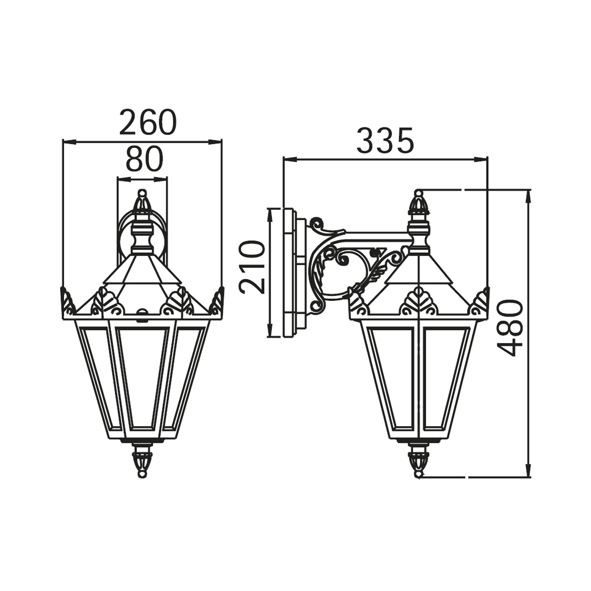Bei der 1807 Außenwandleuchte von Albert Leuchten handelt es sich um eine ästhetisch hochwertige Außenwandleuchte aus deutscher Herstellung. Der Leuchtenkorpus orientiert sich an der Formensprache klassischer Laternen und besteht aus korrosionsbeständigem Aluminiumguss. Palmetten schmücken die Eckpunkte der Leuchtenverdachung und verleihen dem Produkt zusammen mit seiner veredelten Oberfläche und den vegetabilen Details einen repräsentativen Charakter. Mit Montageplatte und äußeren Scheiben aus klarem Glas.