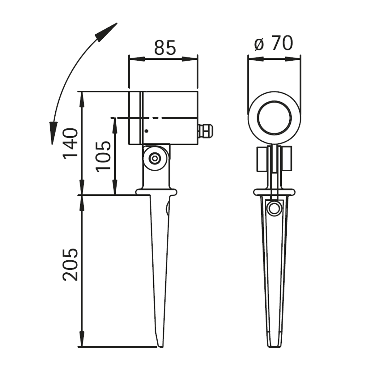 - Erdspießstrahler mit um 120° schwenkbarem Kopf