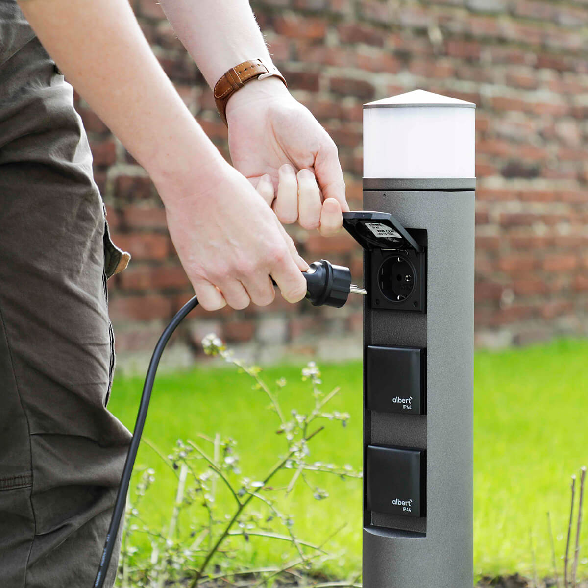 - Lichtsäule mit 3 Schutzkontaktsteckdosen 16 A/250 V