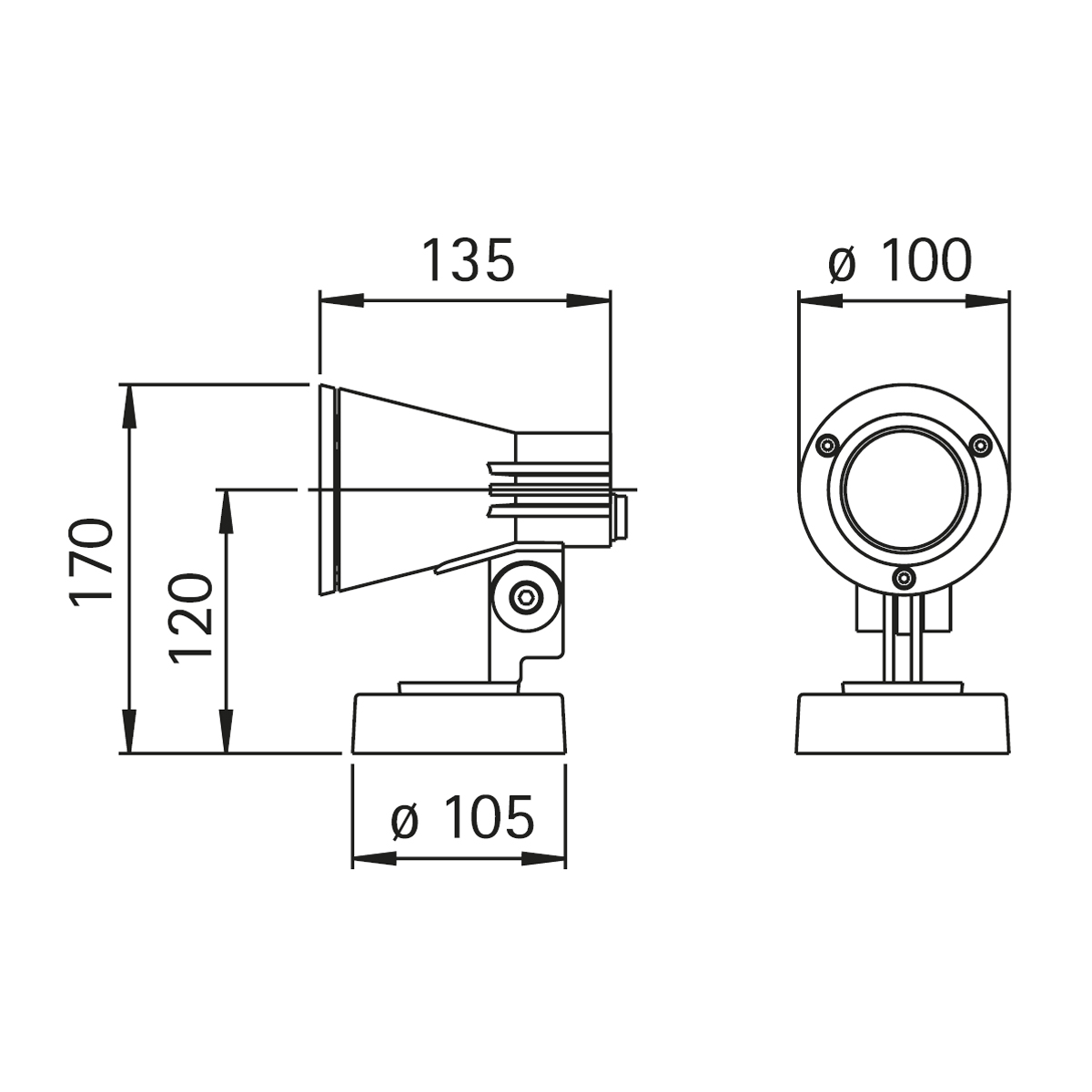 - Moderner Kleinstrahler mit um 360° drehbarem und um 120° schwenkbarem Leuchtenkopf