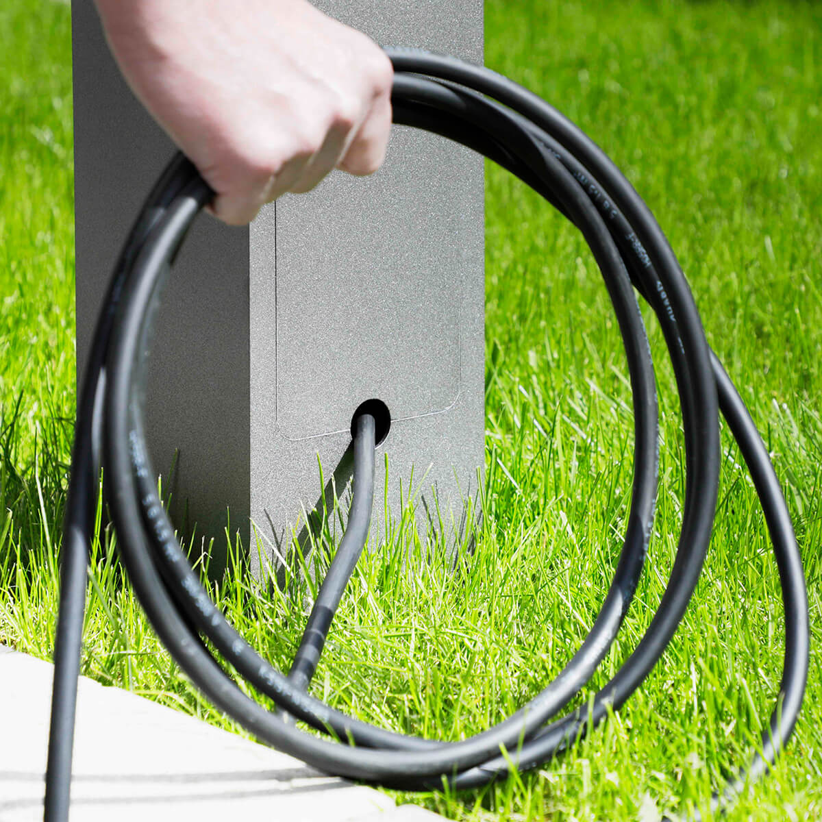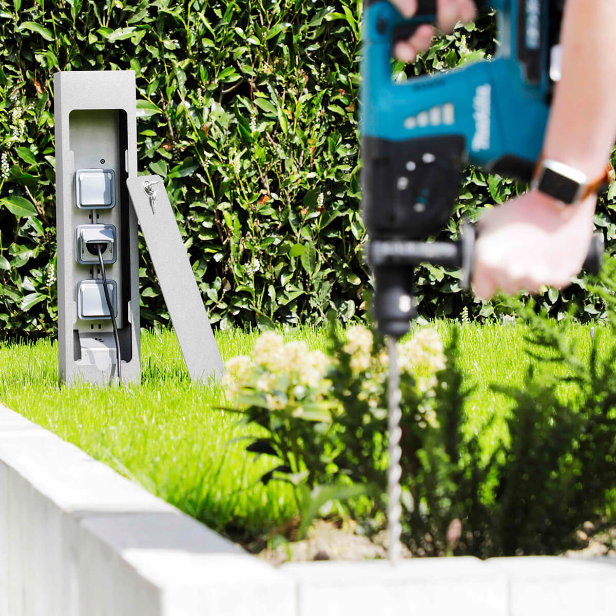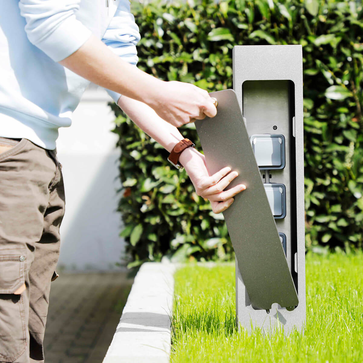 - Modern-schlichte Steckdosensäule mit abschließbarer Tür