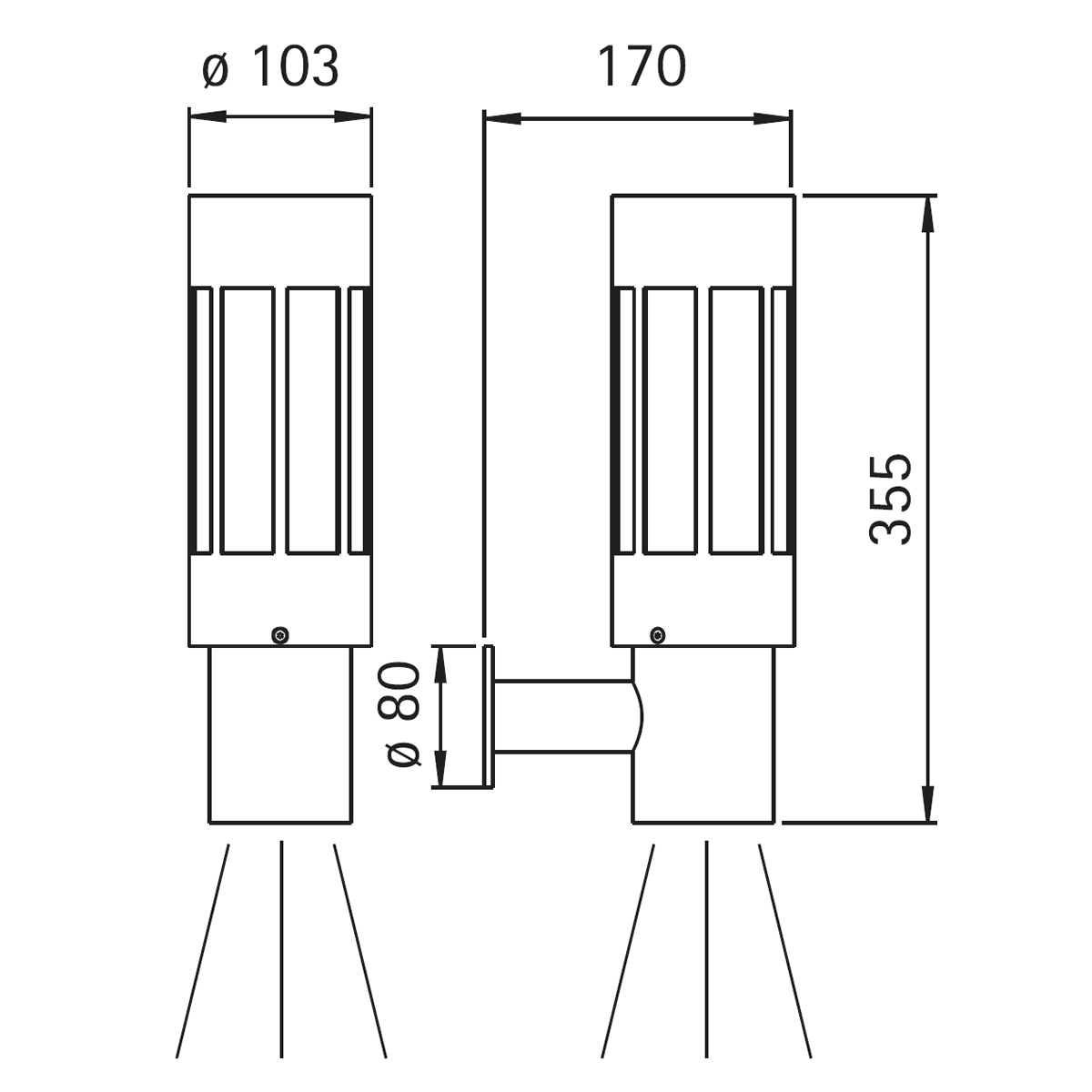 - Optional mit integriertem Bewegungsmelder (Erfassungsbereich 360°, Reichweite ca. 12 m) oder zusätzlichem Tiefstrahler (Reflektorlampe PAR 20)