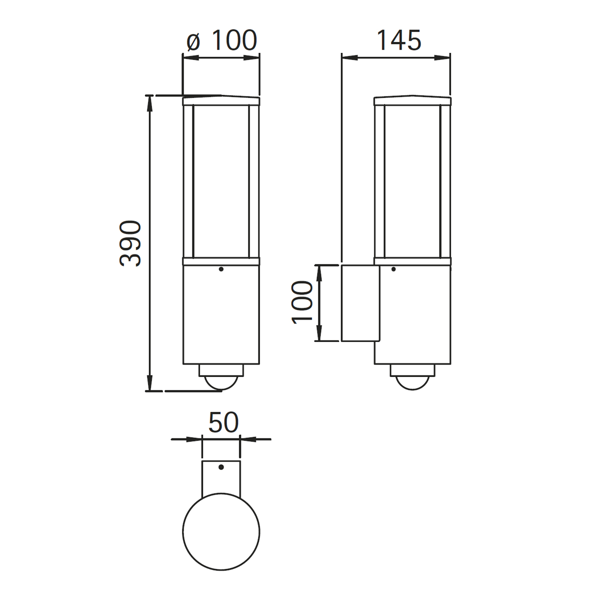 - Optional mit integriertem Bewegungsmelder (Erfassungsbereich 360°, Reichweite ca. 12 m) oder zusätzlichem Tiefstrahler (Reflektorlampe PAR 16)