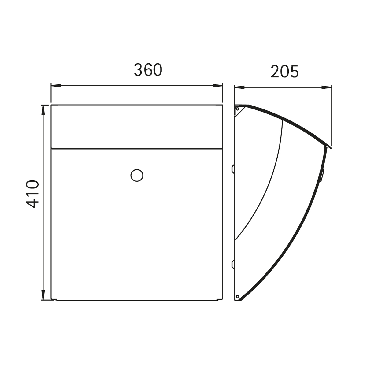- Der Briefeinwurf erfolgt von oben her, zur Sendungsentnahme ist die Briefentnahmeklappe nach vorn zu öffnen
