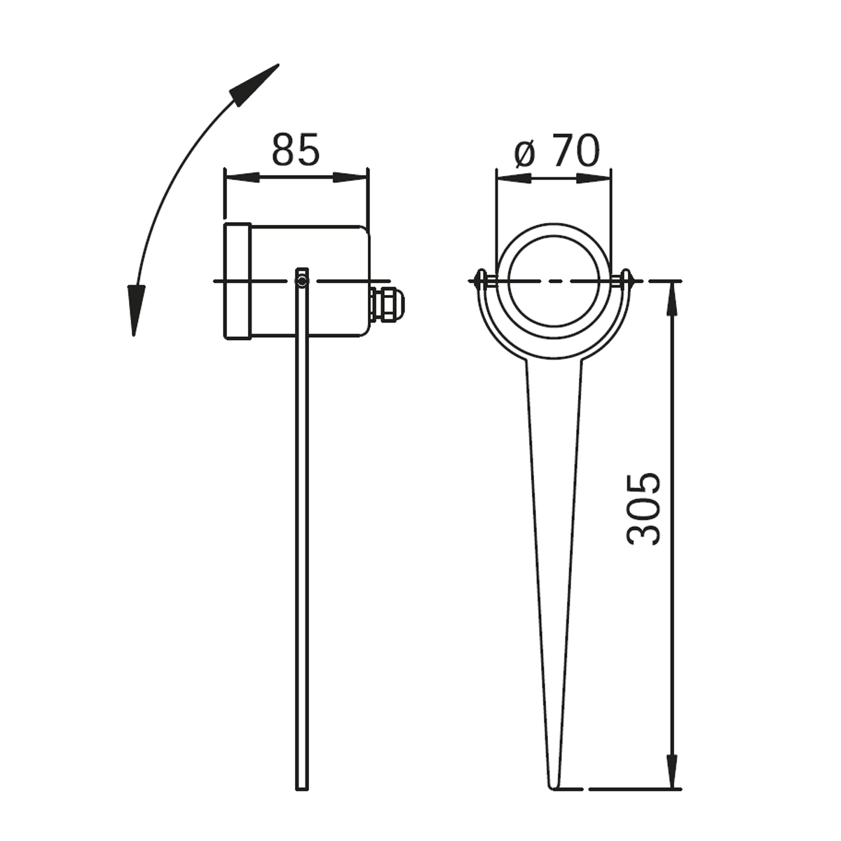 - Spießstrahler mit um 120° schwenkbarem Kopf