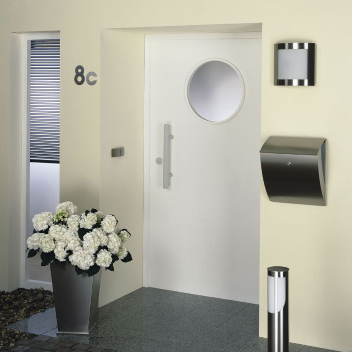 • Außenleuchte in Edelstahlbauweise und modern-zeitloser Form