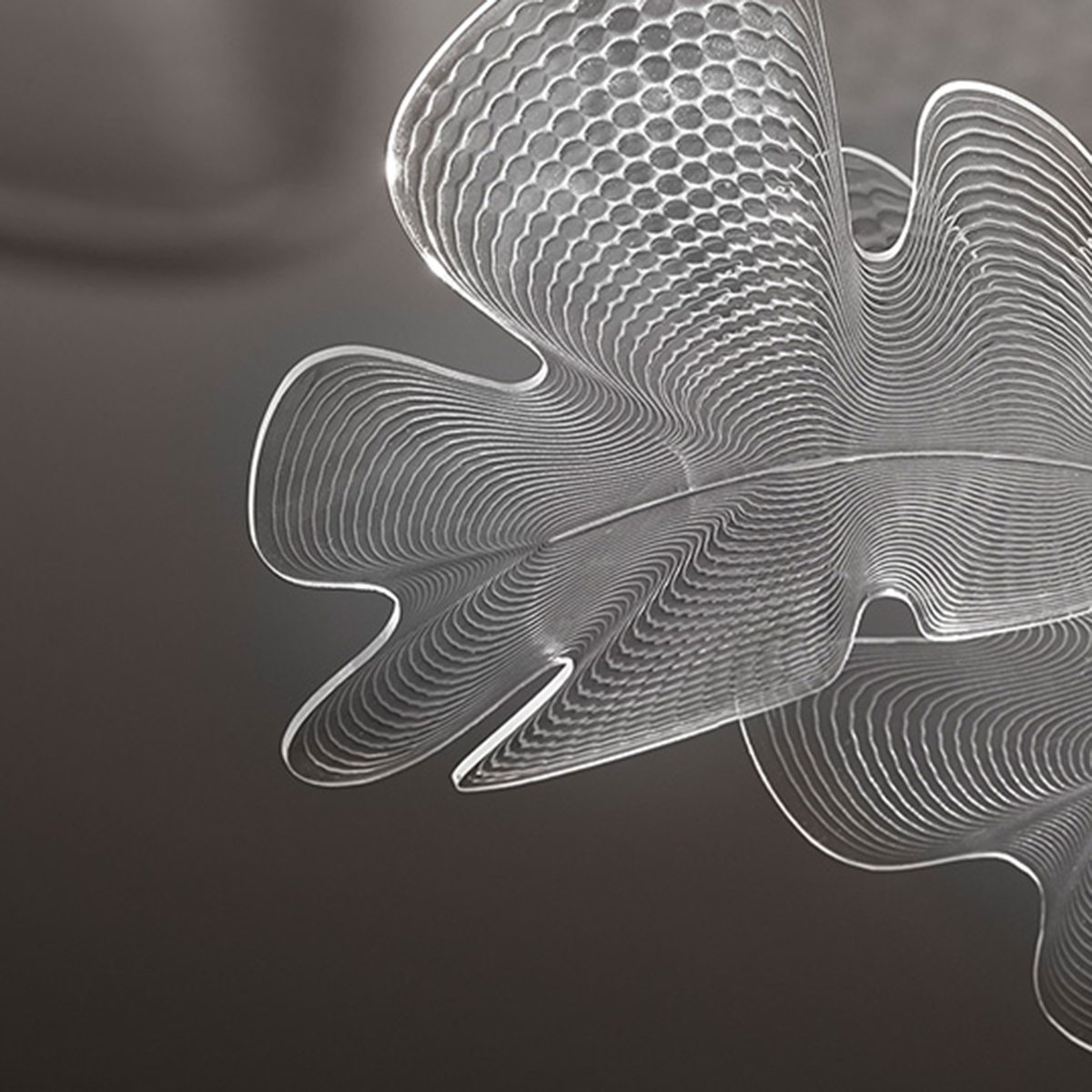 - Wellenartig geschwungene Kunststoffelemente brechen das Licht und erzeugen raffinierte Licht- und Schatteneffekte