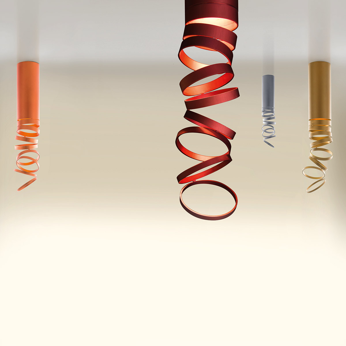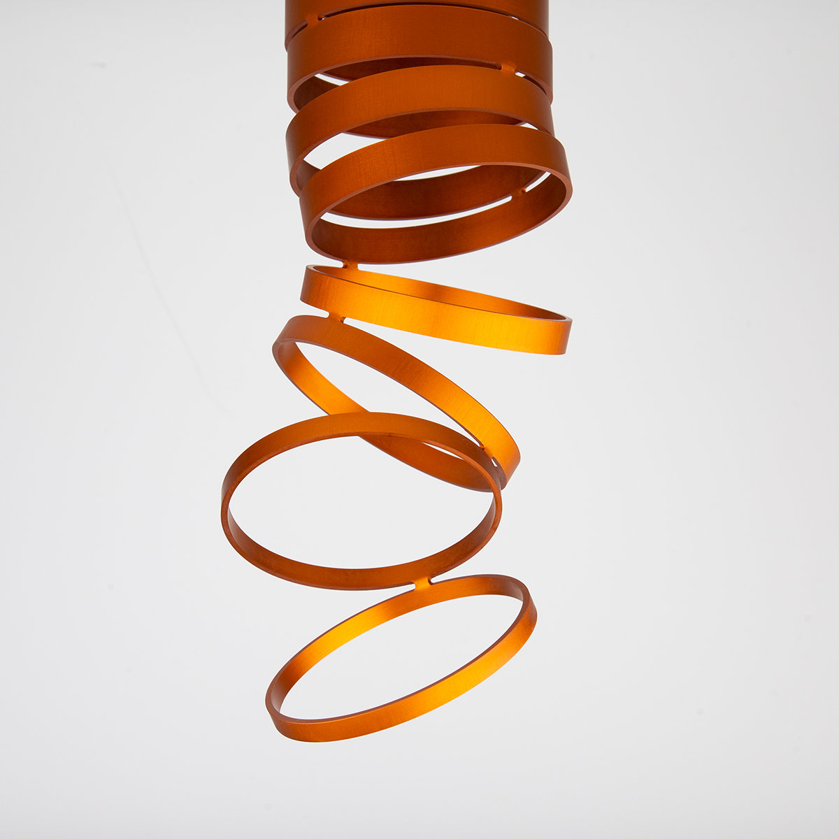 - Kunstvoll verwobene Deckenleuchte, deren eloxierter Korpus sich nach unten hin zu entmaterialisieren scheint
