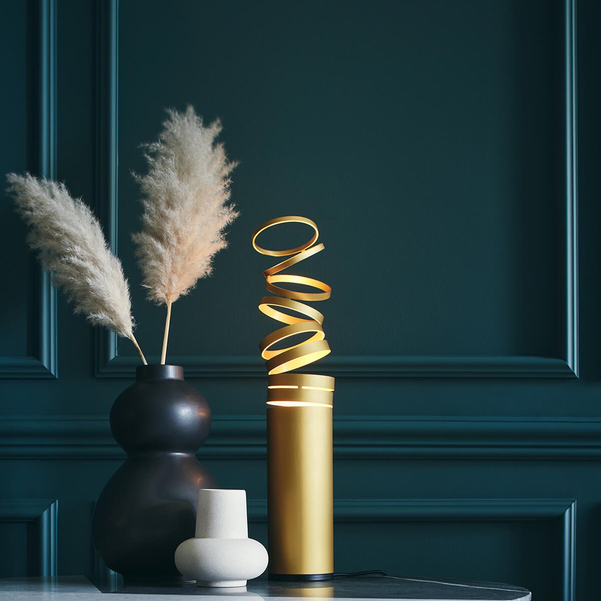 - Kunstvolle Tischlampe, deren Korpus sich nach oben hin aufzulösen scheint