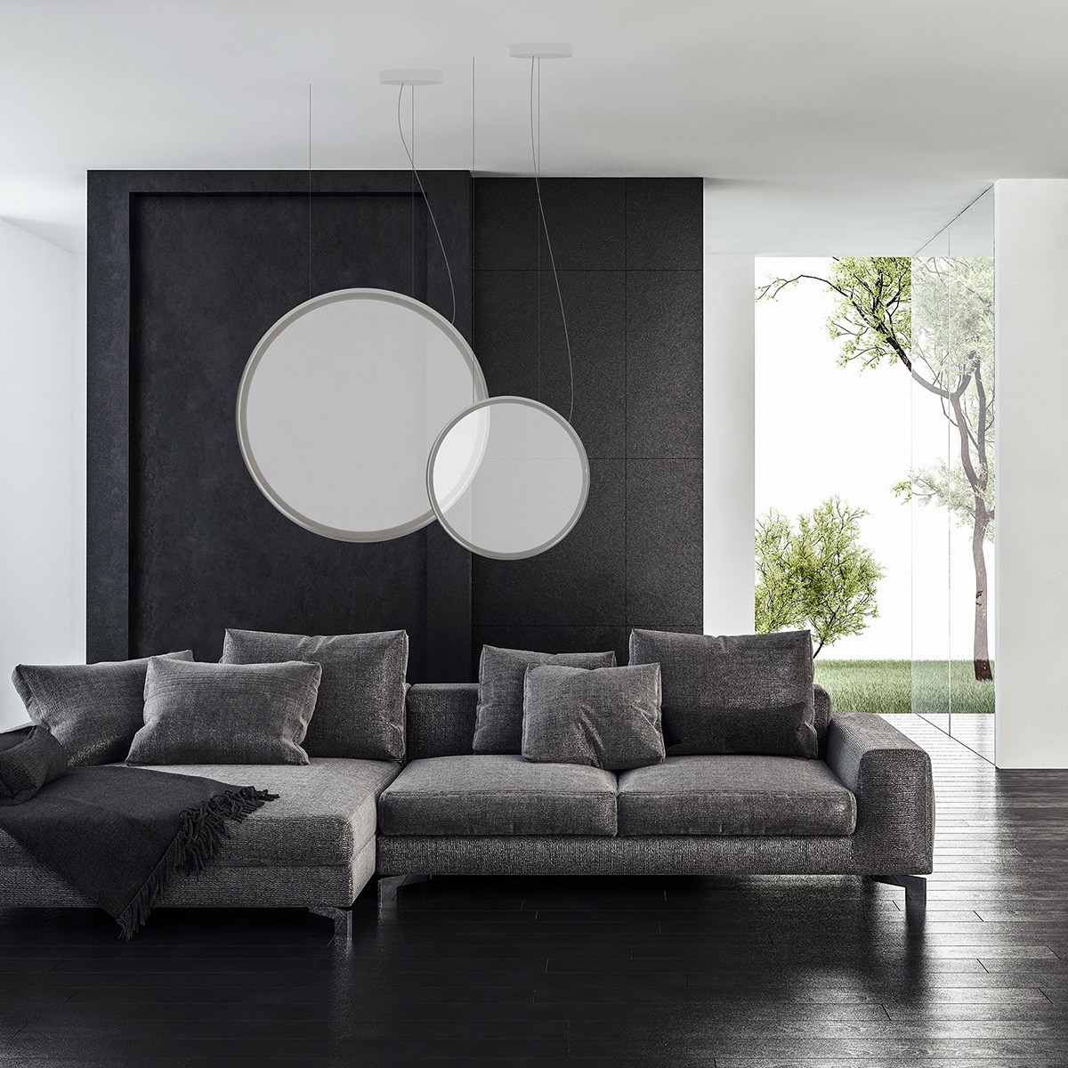 - Entmaterialisiert wirkende Pendelleuchte mit veredeltem Aluminiumprofil