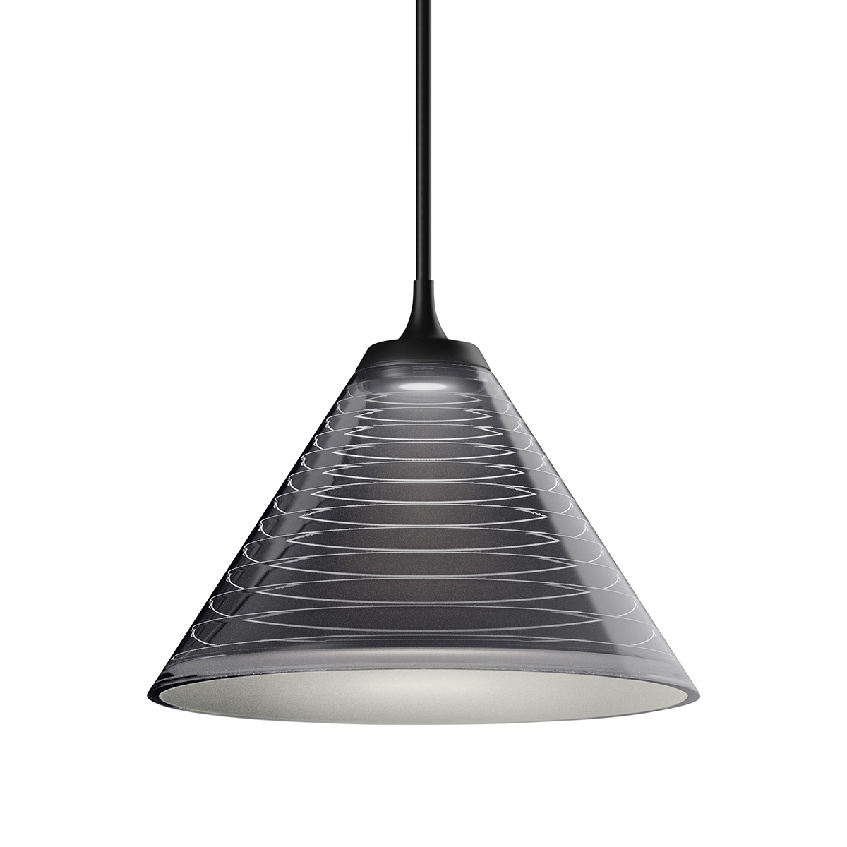 - Moderne Pendelleuchte mit einem Leuchtenschirm aus schwarz durchscheinendem Methacrylat