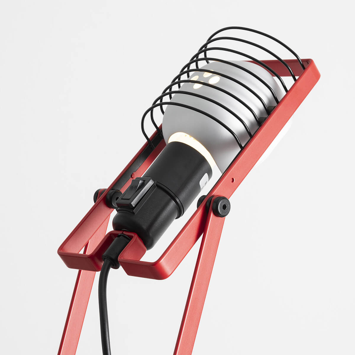 Den verstellbaren Kopf bildet ein stabiler Rahmen mit Reflektor und E27-Fassung. Ein feines Schutzgitter sorgt für Sicherheit und unterstreicht den industriell-technischen Charakter der Tischleuchte. Eine passende LED-Filamentlampe mit matter Oberfläche und 2.700 Kelvin liegt der Lieferung kostenlos bei. Das Ergebnis ist ein gerichtetes, effizientes  Licht, das sich mühelos an diverse Nutzungssituationen anpassen lässt – von der funktionalen Schreibtisch-Beleuchtung im Homeoffice bis zur dekorativen Leseleuchte im Wohnzimmer oder Atelier.