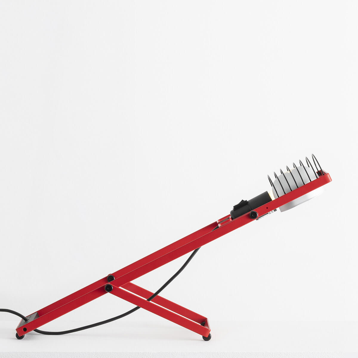 Typisch für Gismondis Ansatz vereint die Sintesi Tavolo technische Präzision, Effizienz und zeitlose Formgebung. Die Tischlampe lässt sich vollständig zusammenfalten, was sie nicht nur platzsparend, sondern auch transportfreundlich macht. Ihre schlichte, funktionale Ästhetik spiegelt den Geist einer Ära wider, in der Design vor allem eines war: intelligent und langlebig.