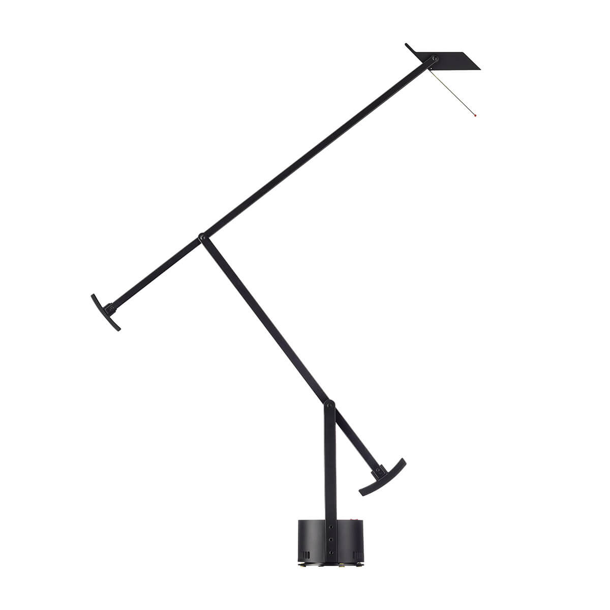 Charakteristisch sind der verstellbare Kopf und die frei schwenkbaren Arme, die dank der markanten Gegengewichte jederzeit perfekt ausbalanciert bleiben. Die Tischlampe lässt sich mühelos mit einer Hand in jede gewünschte Position bringen und bietet dabei stets eine präzise, direkte Lichtausrichtung. Möglich wird dies durch ein ausgeklügeltes Lichtleitersystem, das nicht nur für eine klare, funktionale Ausleuchtung sorgt, sondern auch die filigrane, technisch reduzierte Optik der Leuchte unterstreicht.