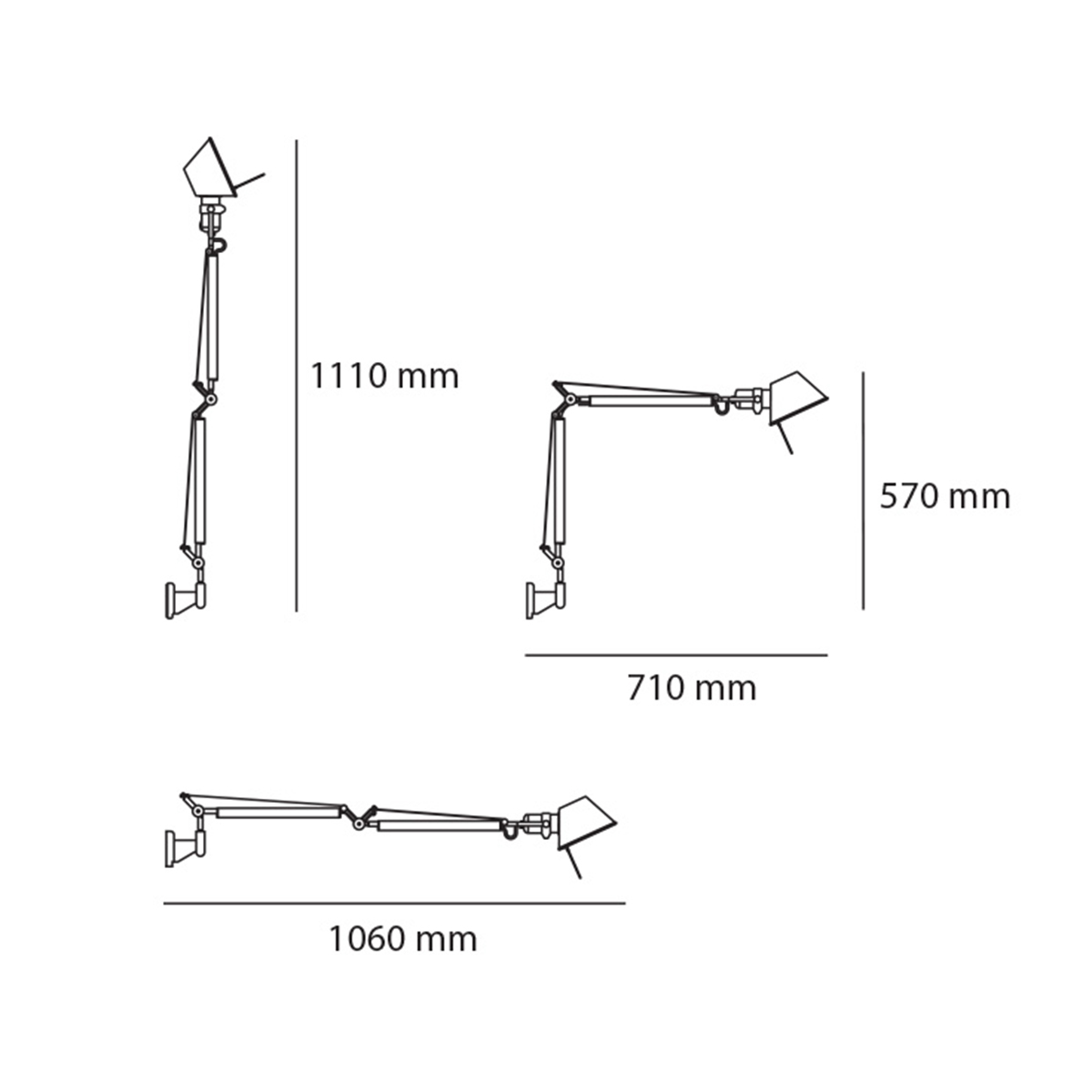 - Raumsparende Version der Artemide Tolomeo Parete Designikone