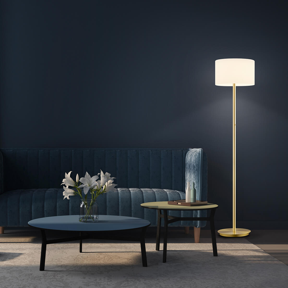 - Modern-elegante Stehlampe mit opwalweißem Glasschirm