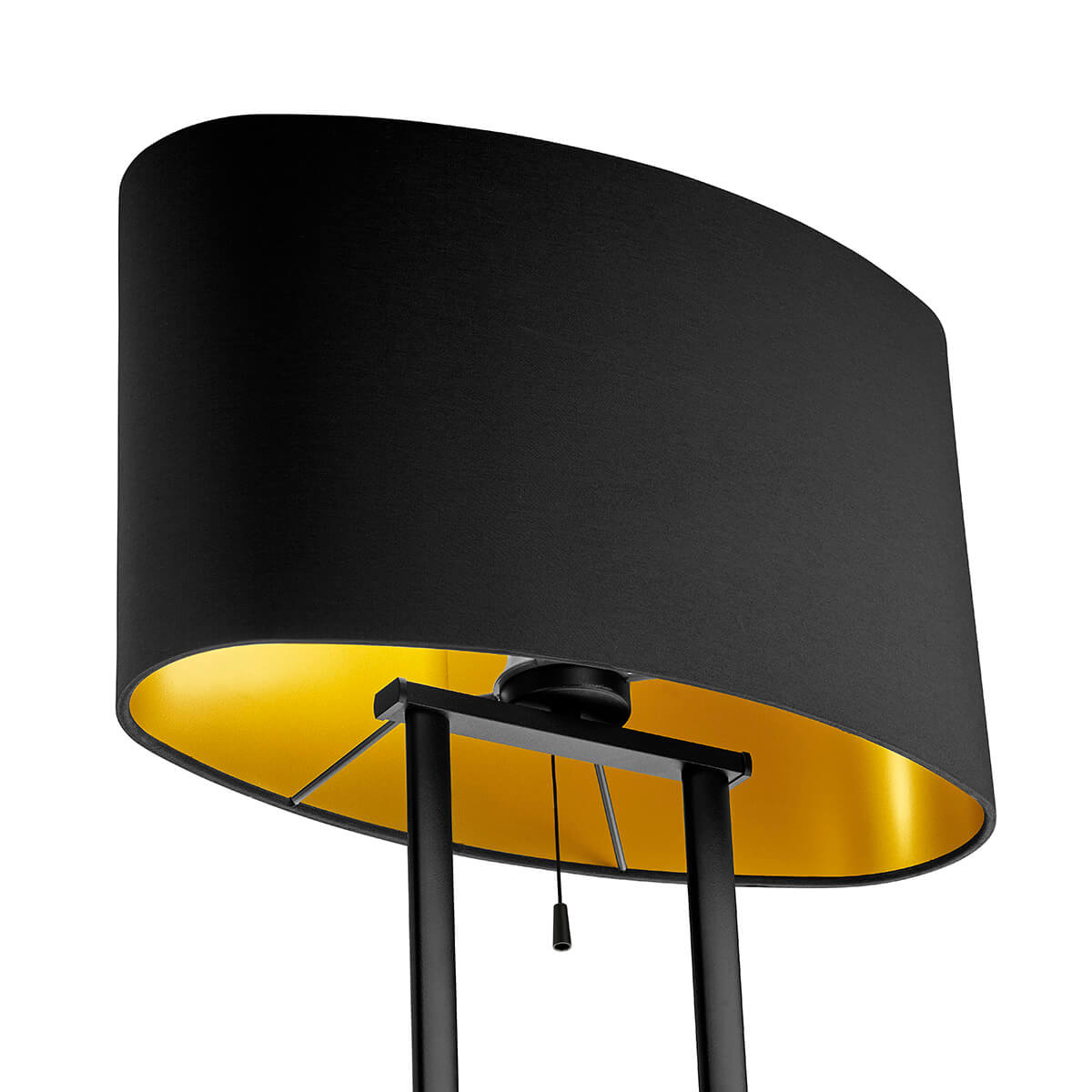 | Lampenschirm: | Leinenstoff schwarz, innen Gold |
