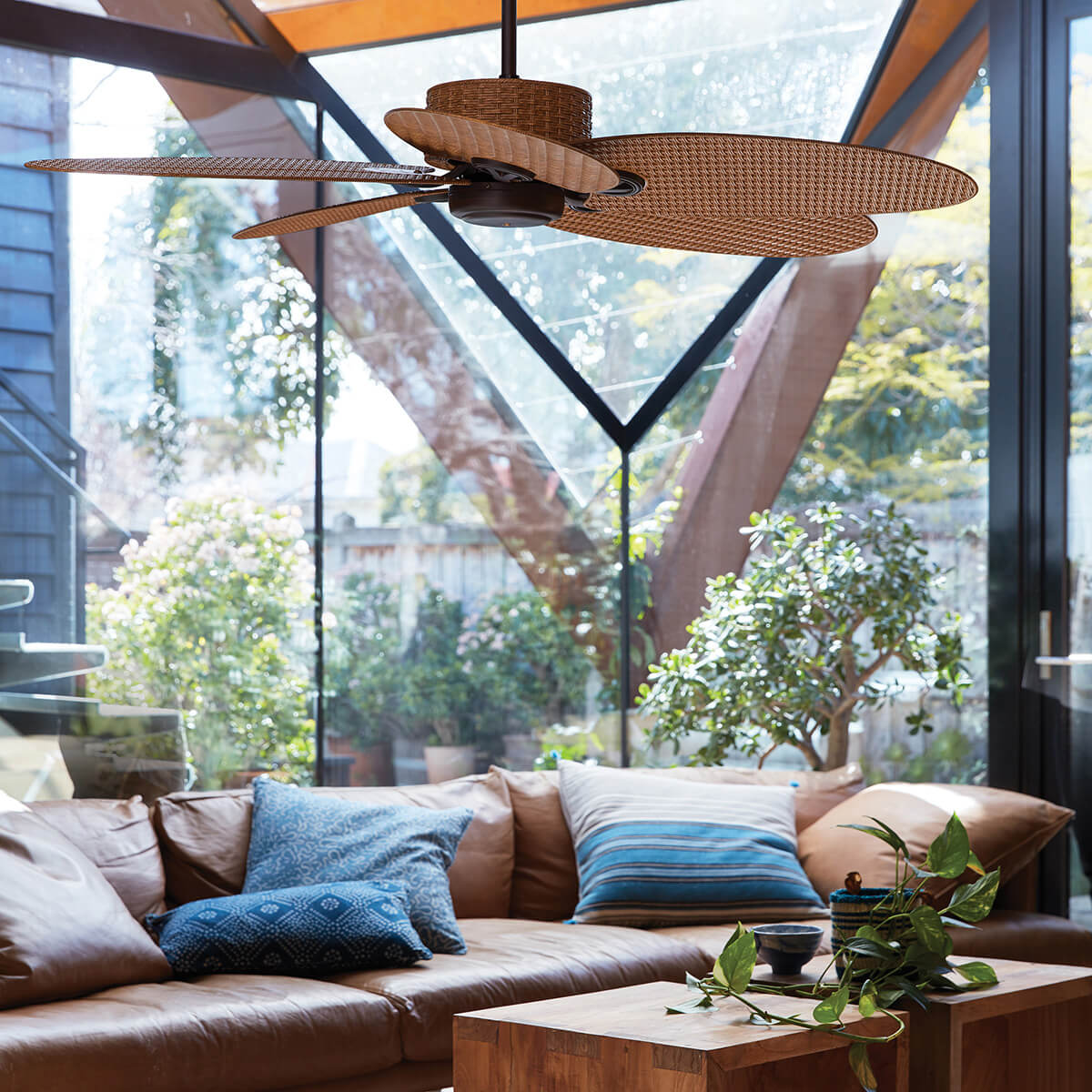 Erhältlich ist der Beacon Lighting Deckenventilator Fijian II von Lucci Air in zwei attraktiven Farbvarianten: in elegantem Antik Weiß für eine zeitlose Anmutung sowie in einer besonders dekorativen Kombination aus bronzefarbenem Gehäuse und Flügeln in der Farbe Coffee. Diese macht den Ventilator auch im Objektbereich, etwa in Lobbys und Lounges, zu einem tollen Hingucker.