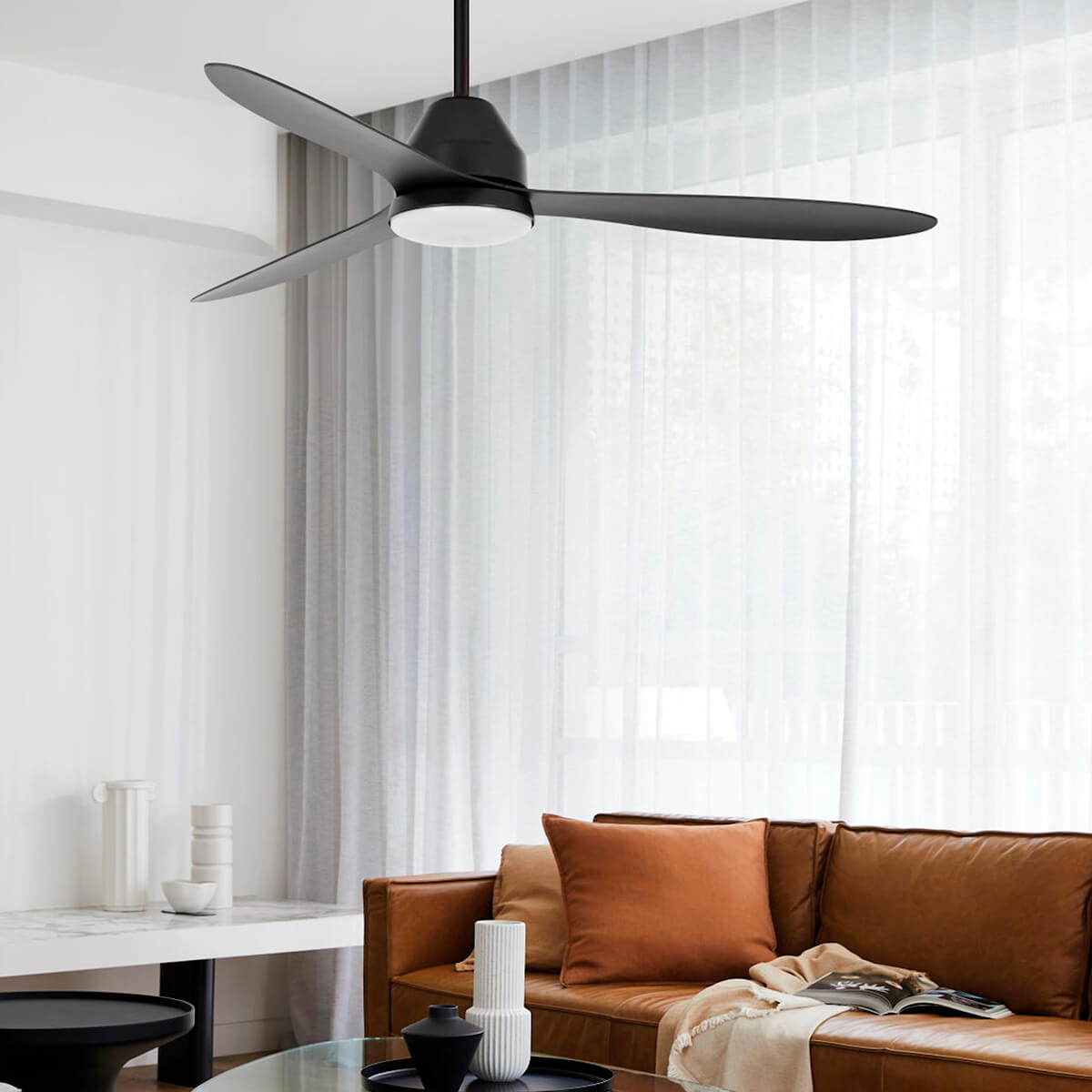 Der Ventilator zeichnet sich durch drei ultraflache Flügel aus, die trotz ihres diskreten Designs eine beeindruckende Luftzirkulation ermöglichen. Mit einem Durchmesser von 142 cm sorgt er für ein optimales Raumklima. Die innovative DC-Technologie des Motors garantiert einen energiesparenden und flüsterleisen Betrieb, was den Lucci Air Whitehaven besonders für Schlaf- und Wohnzimmer qualifiziert.