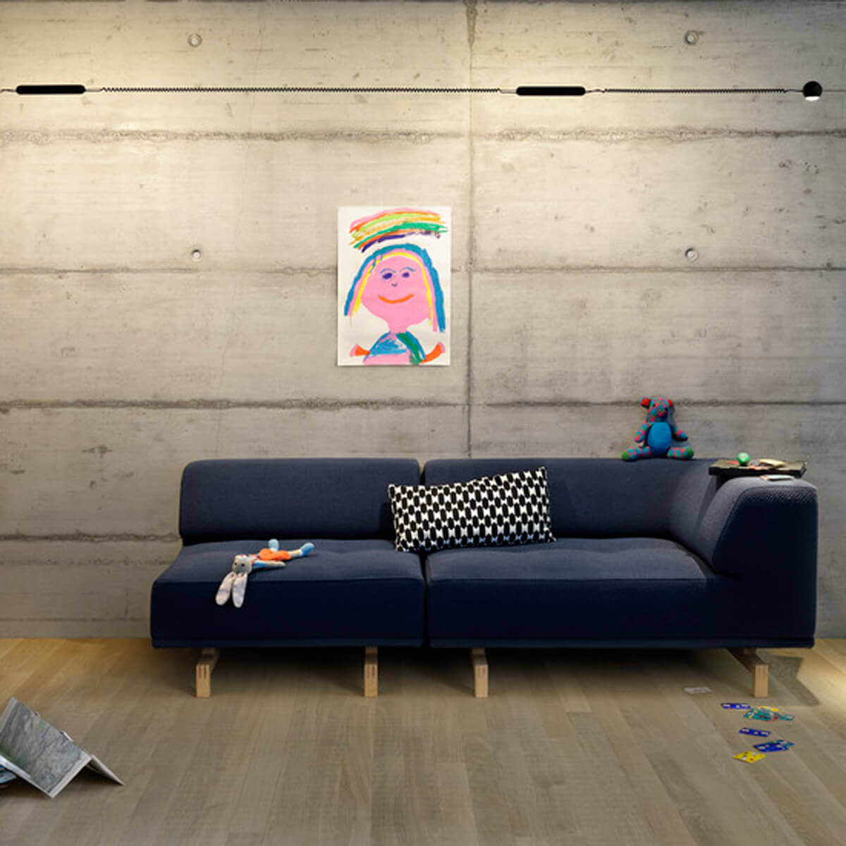 Die Hello Flood Lichtkomponente ist die ideale Lichtlösung für eine gleichmäßige Zonenbeleuchtung in modernen Wohn- und Arbeitsräumen. Der pillenförmige Fluter ist speziell für das flexible Hello Seilsystem konzipiert und bietet eine sanfte, flächige Ausleuchtung, um Räume in ein angenehmes, blendfreies Licht zu tauchen. Entwickelt vom Designer Stephan Hürlemann, ist die LED-Leuchte ein vielseitiges Element, das sich problemlos in verschiedene Raumkonzepte integrieren lässt.