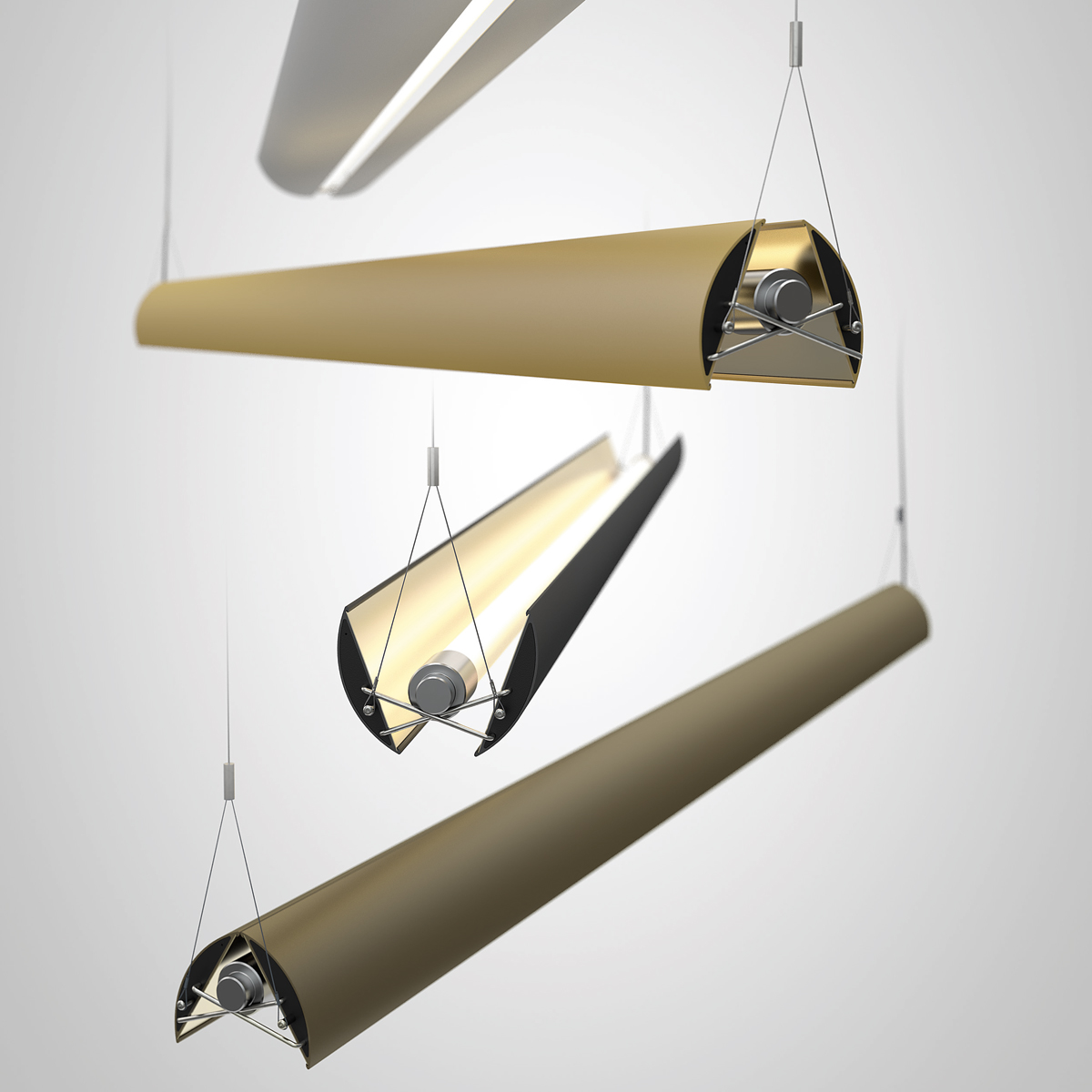 Belux UpDown LED Pendelleuchte 30, Gold, verstellbare Reflektoren
