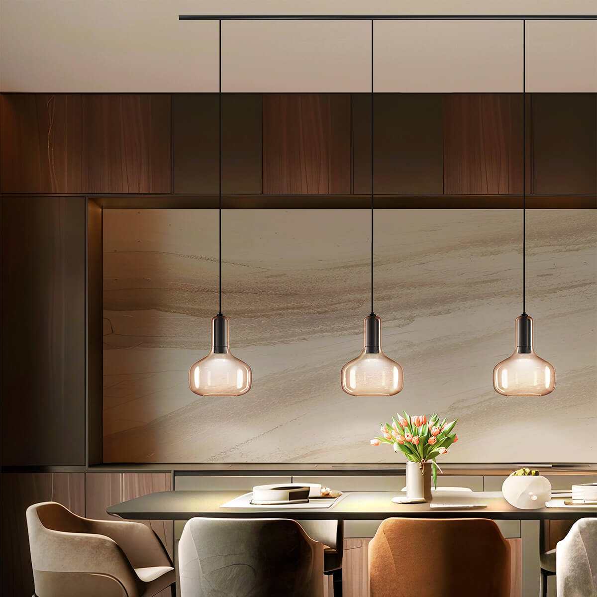Die Integration in Brucks hochwertige Schienensysteme macht das Booh Pendel besonders vielseitig: Passen Sie Position, Ausrichtung und Kombination flexibel an Ihre Bedürfnisse an – ideal für anspruchsvolle Lichtkonzepte in privaten wie gewerblichen Räumen.
