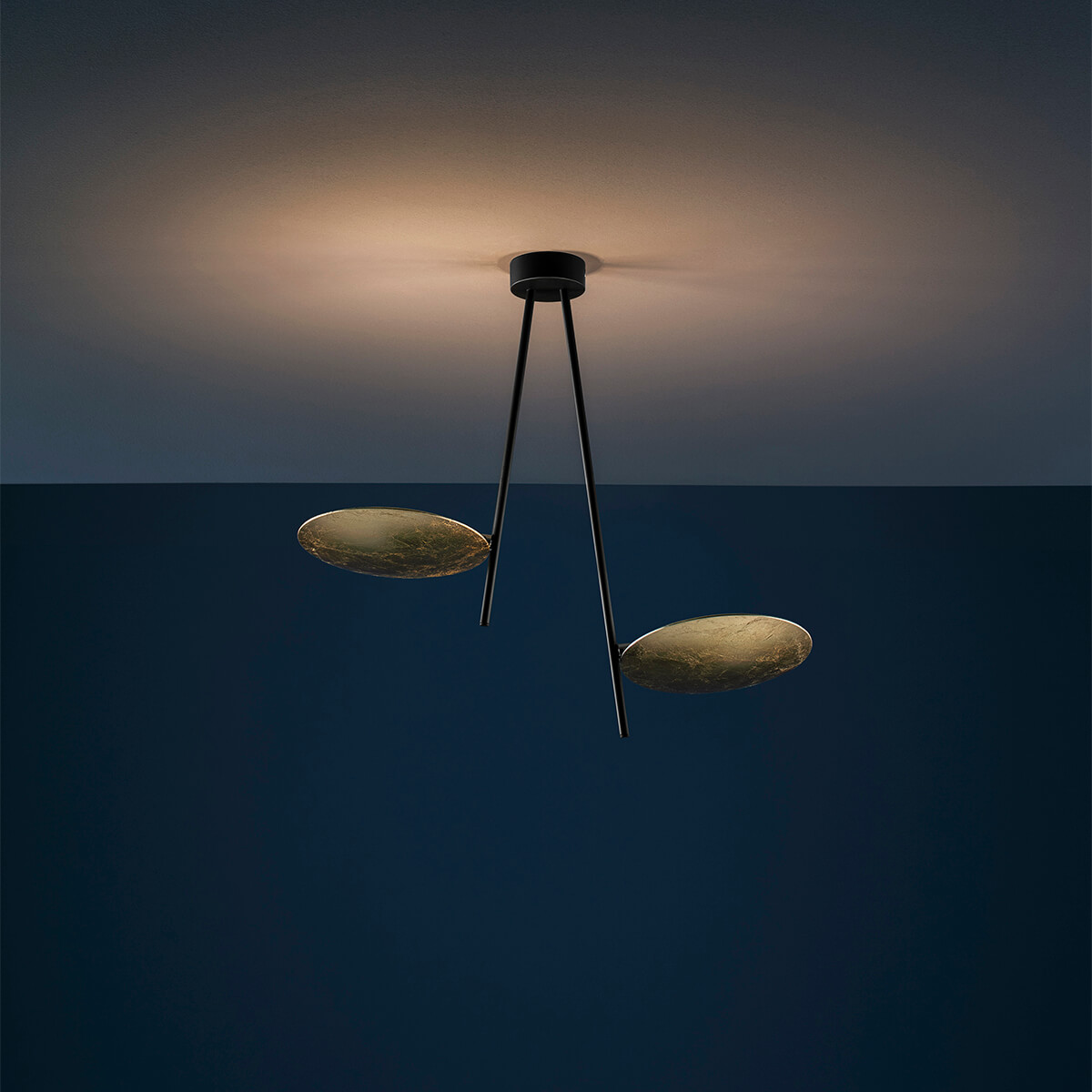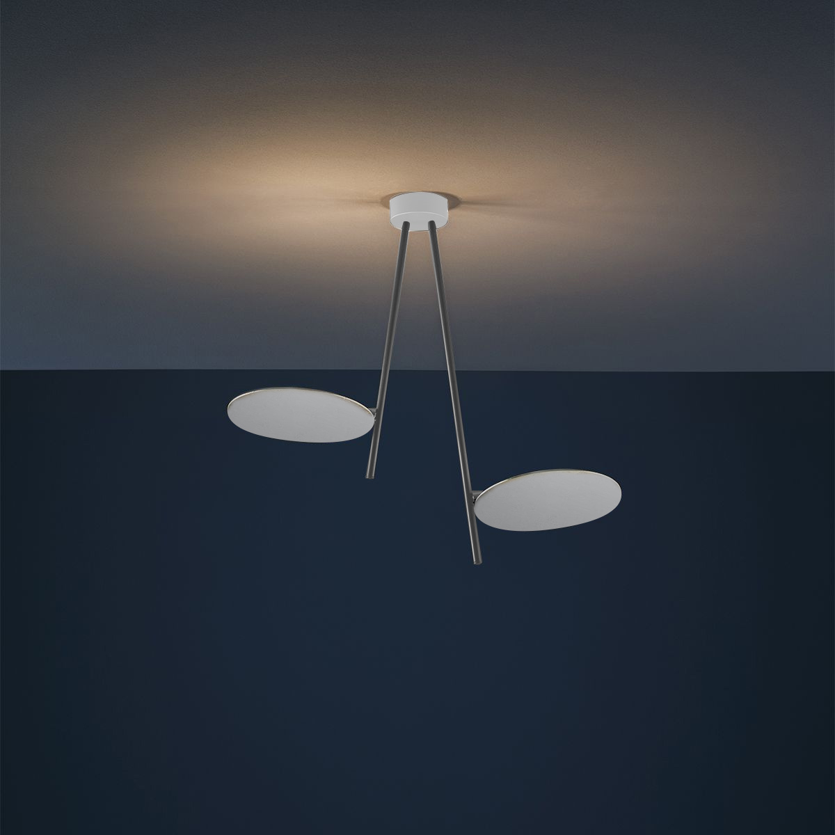 Die Lederam C2 von Catellani & Smith verbindet skulpturale Leichtigkeit mit einer außergewöhnlich angenehmen Lichtwirkung. Zwei fein ausbalancierte Reflektorscheiben scheinen beinahe schwerelos im Raum zu schweben und verleihen der Leuchte eine ruhige, elegante Präsenz. So wird sie nicht nur zur funktionalen Deckenlampe, sondern zu einem stilprägenden Designobjekt für Wohnzimmer, Flur sowie anspruchsvolle Objektbereiche wie Lounges, Hotels und Empfangszonen.