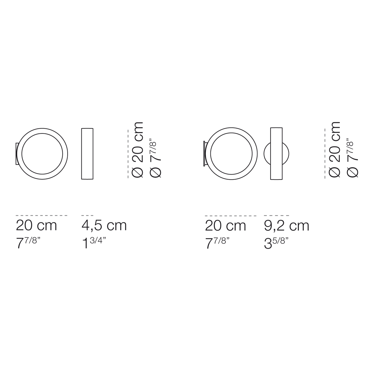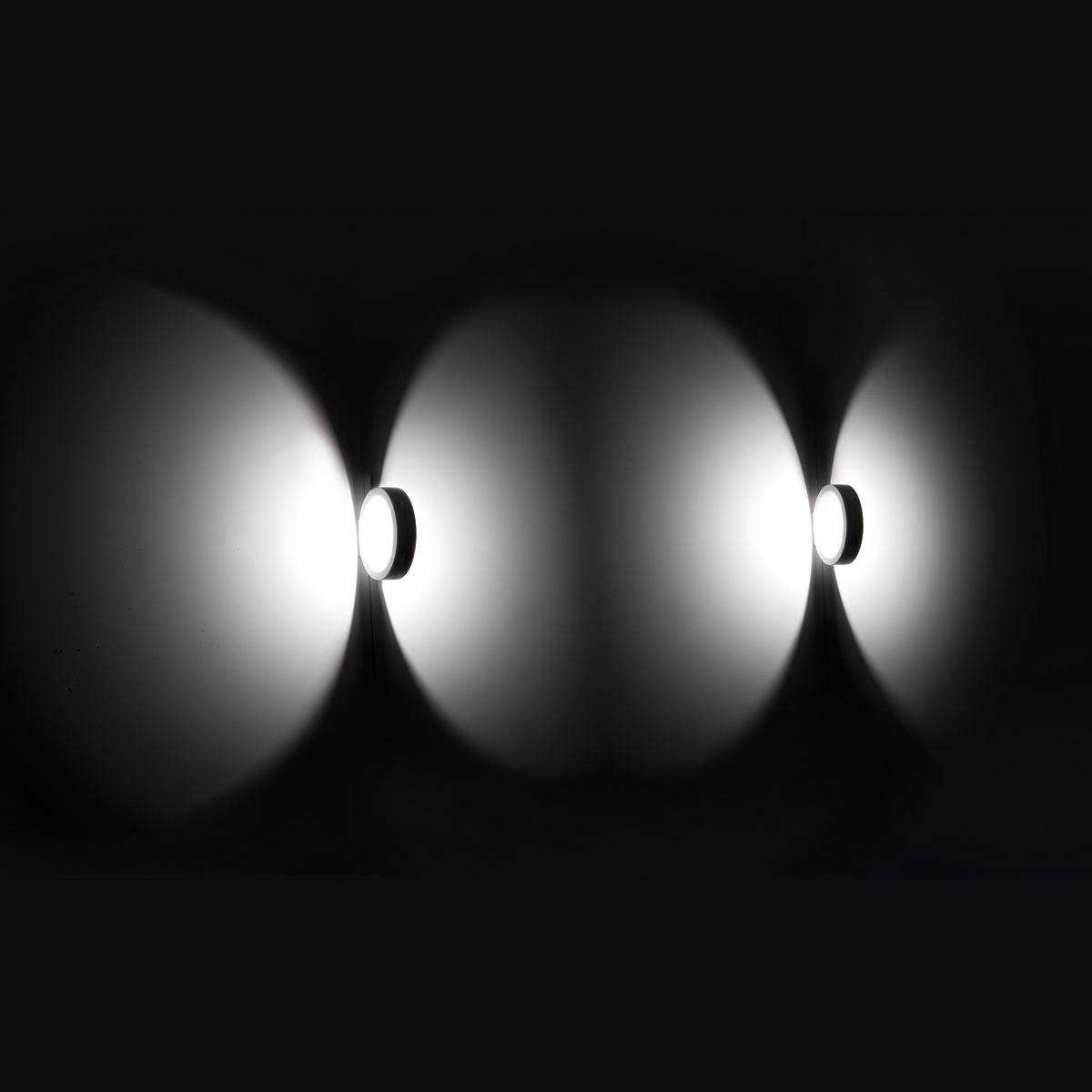 Gefertigt ist der ringförmige Leuchtenkörper aus weiß, schwarz oder mattgold lackiertem Aluminium. Seine besondere Wirkung entfaltet die Assolo Parete / Soffitto im eingeschalteten Zustand, wenn die Leuchte zwei gleichförmige Halbkreise aus Licht auf die benachbarten Raumflächen zaubert.