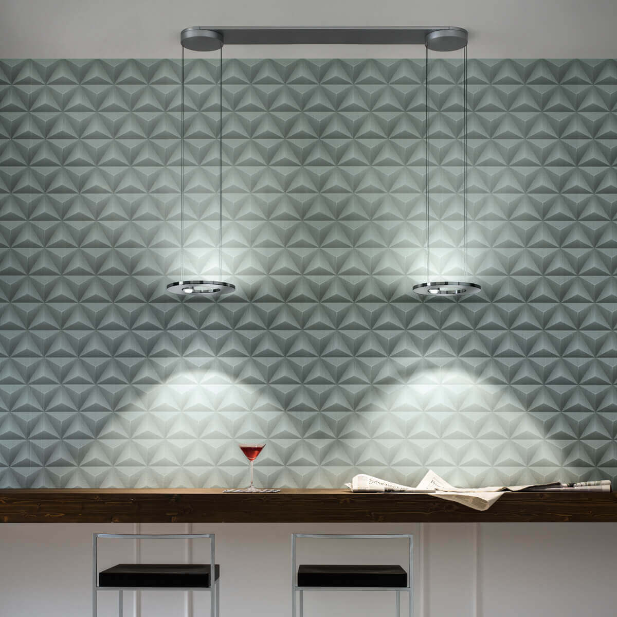 Die Cini & Nils Passepartout25 Rosone 90 dient als Zubehör für die Passepartout25 sopratavolo LED Pendelleuchten. Es handelt sich um einen Baldachin, der es ermöglicht, mehrere Leuchten in Serie zu schalten und von einem einzigen Lichtpunkt aus zu betreiben. Die einzelnen Pendel werden durch den Baldachin in einem Abstand von circa 90 cm aufgehängt.