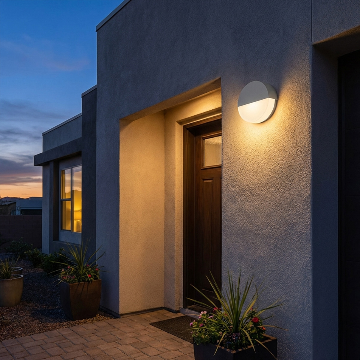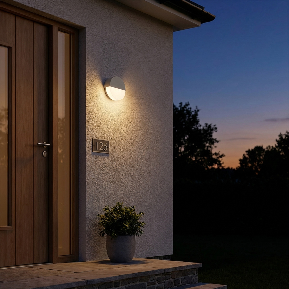Gefertigt aus hochwertigem Aluminiumguss und wahlweise in Silber oder Anthrazit erhältlich, fügt sich die Wandleuchte harmonisch in unterschiedlichste Architekturstile ein – vom klassischen Einfamilienhaus bis zur modernen Stadtvilla. Der Opalglas-Diffusor sorgt für einen gerichteten Lichtaustritt. Das Licht wird weich gestreut und gleichmäßig verteilt, wodurch Blendungen vermieden und Hauswände stilvoll in Szene gesetzt werden.