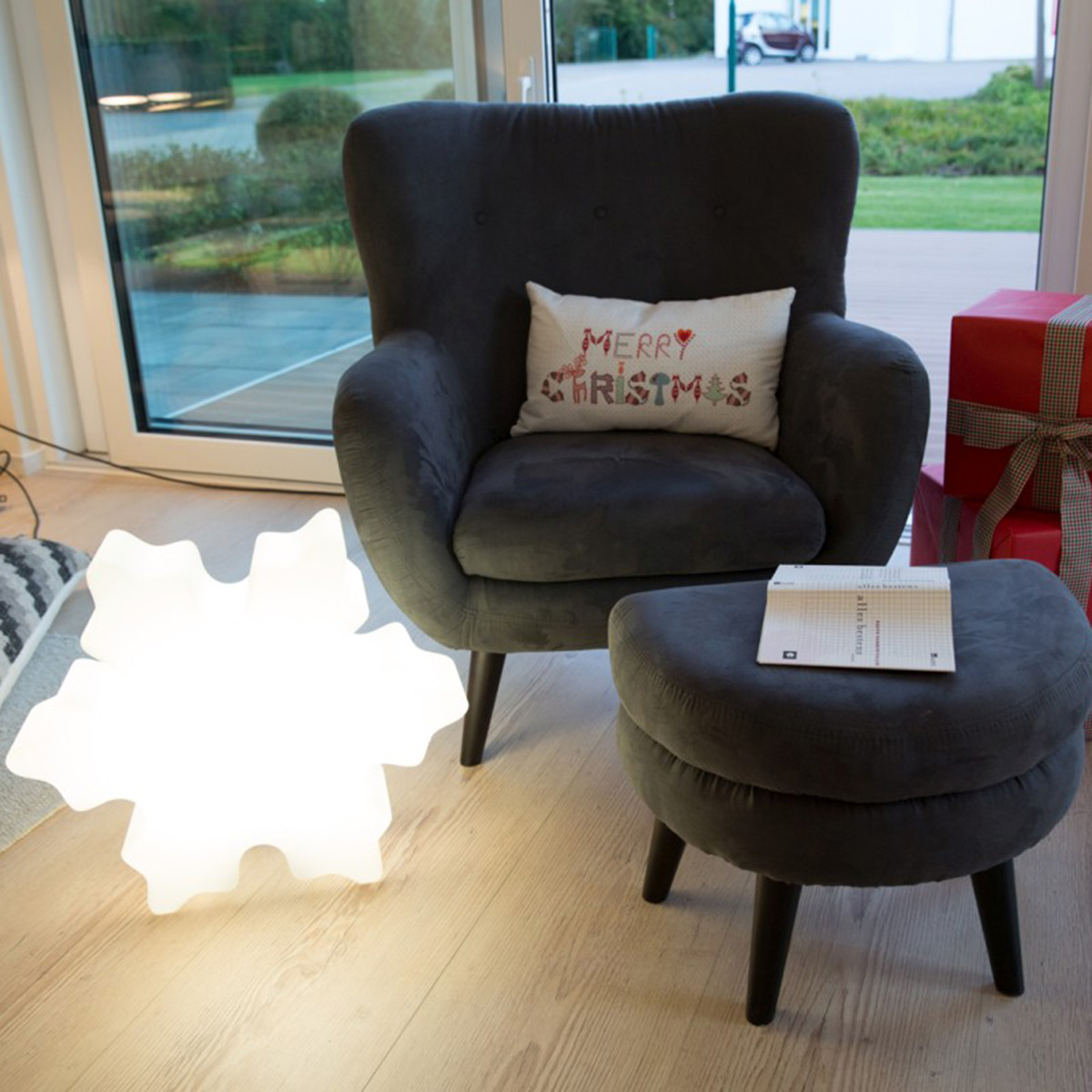 - Modern-schlichte Dekolampe in Form einer Schneeflocke