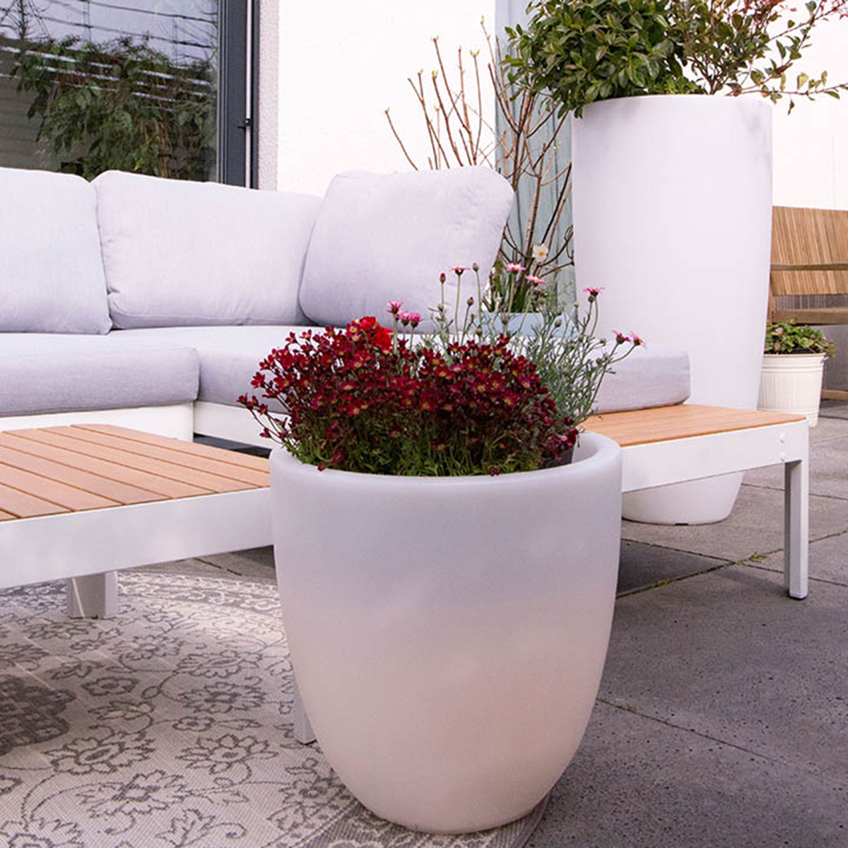 - Zeitlose Bodenleuchte, die auch als leuchtender Blumentopf verwendet werden kann