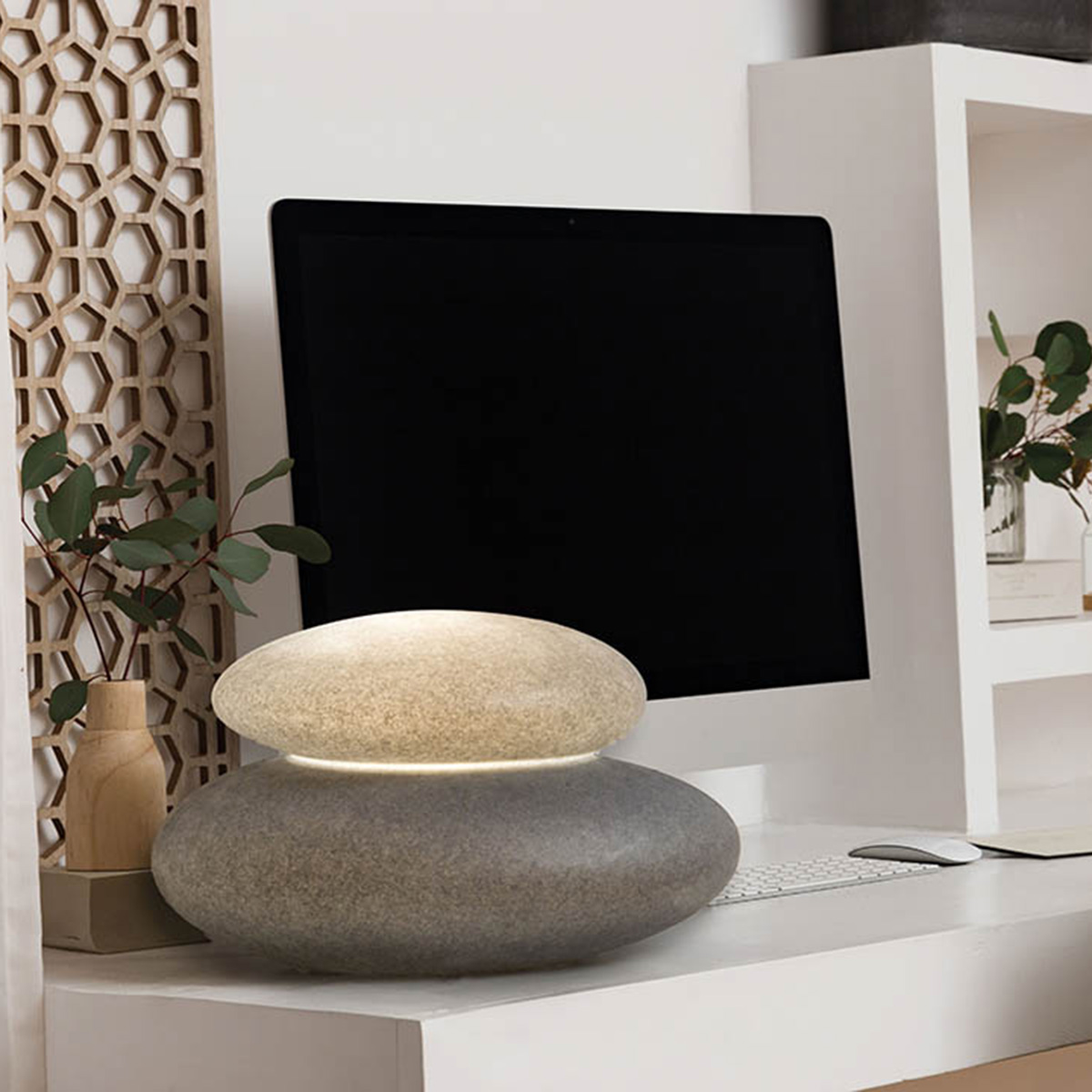 - Moderne Tisch- und Bodenleuchte in Form gerundeter Steine