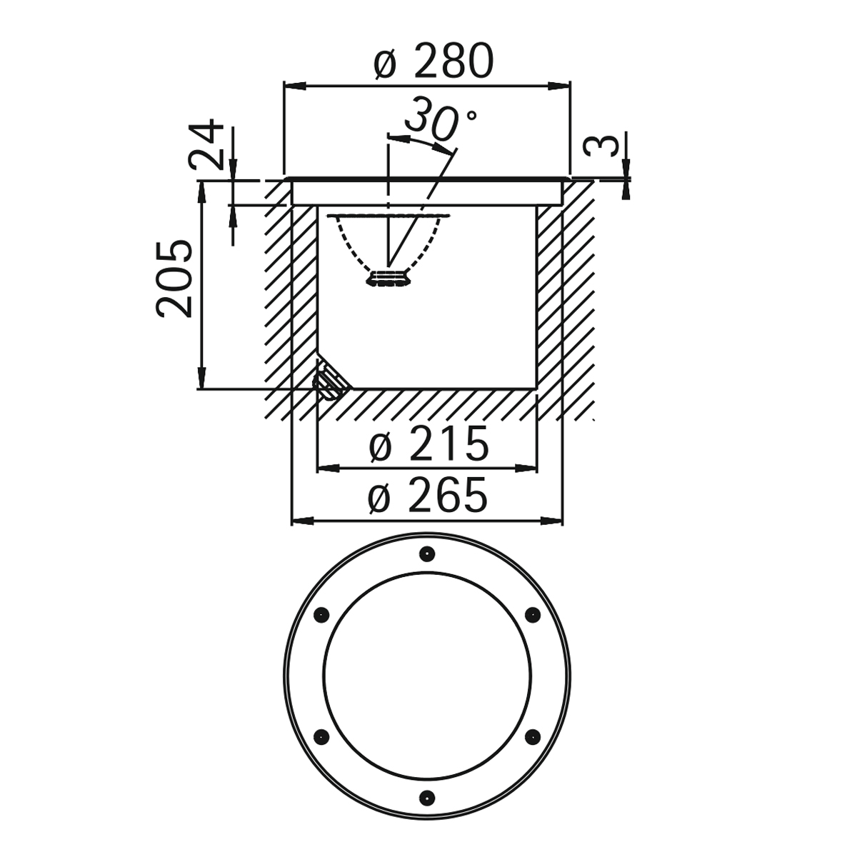 - Lichtstarker, um 30° schwenkbarer Erdeinbaustrahler
