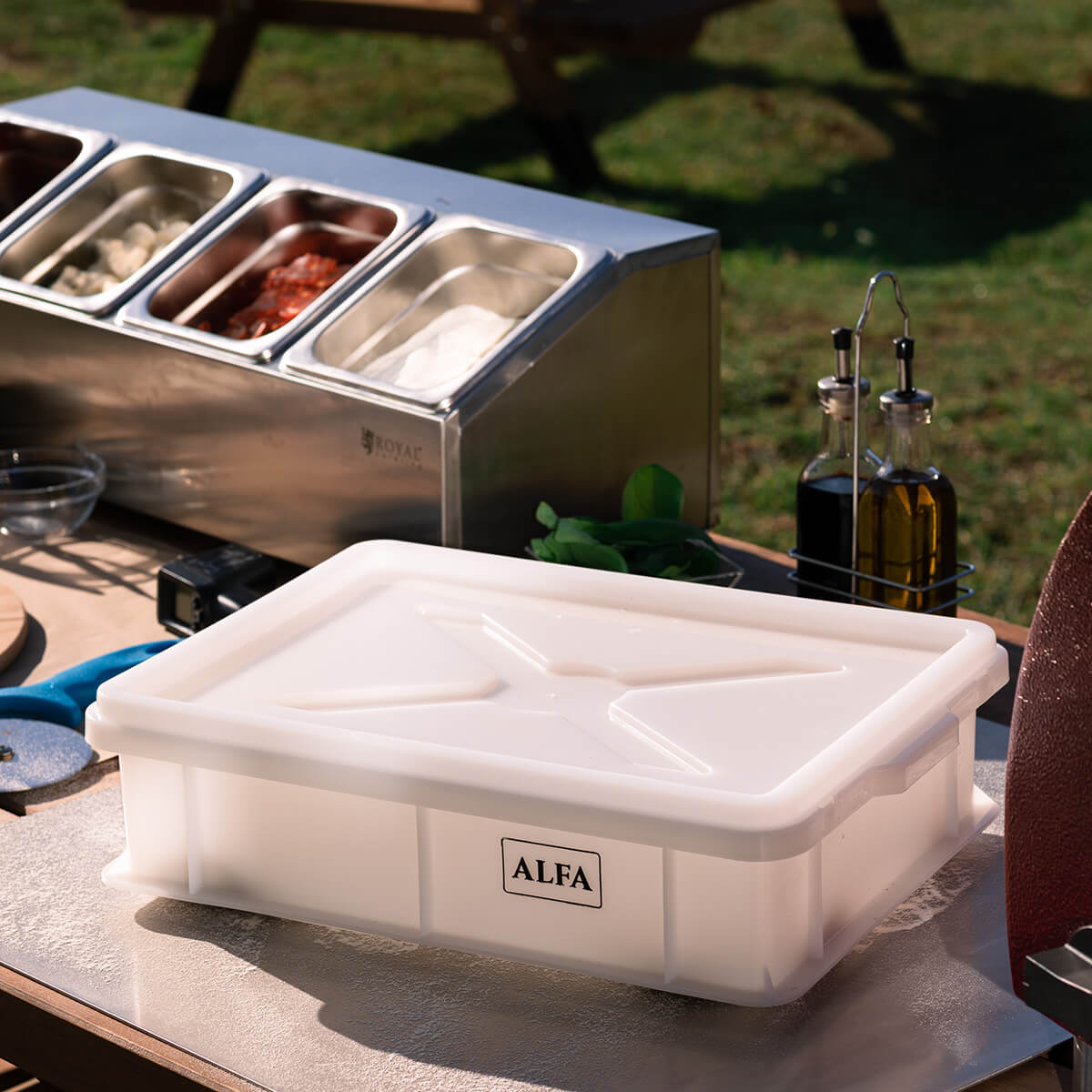 The dough ball container from the traditional Italian company Alfa Forni is the must-have for anyone who wants to master the art of perfect homemade pizza. It creates ideal air conditions and ensures maximum hygiene during the proofing of the dough - a crucial step for the success of your pizza.