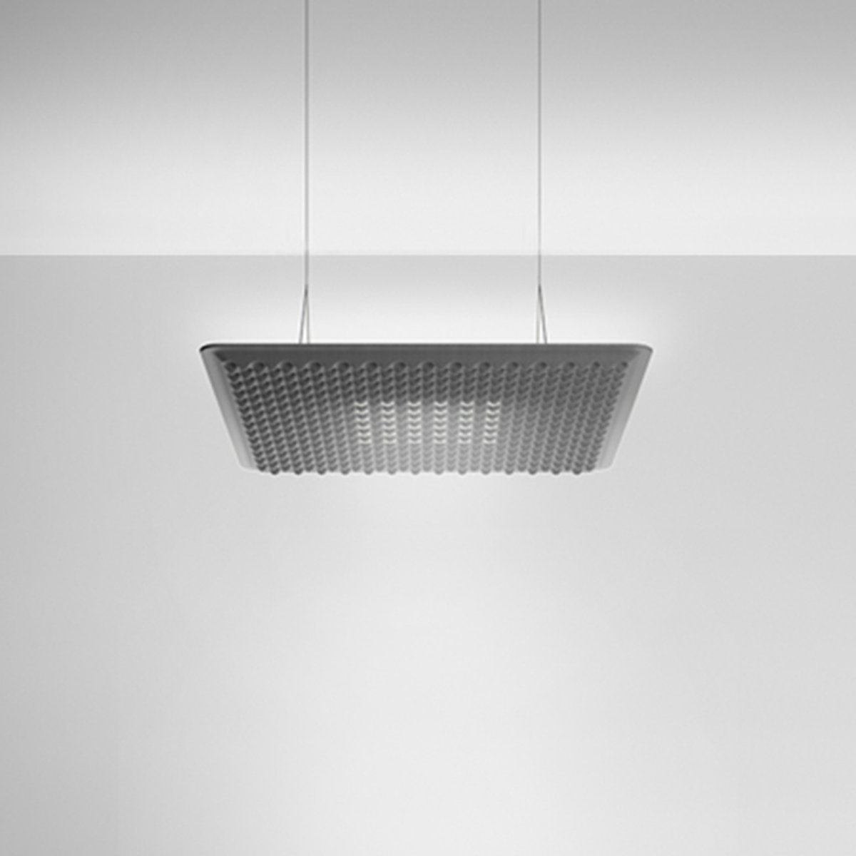 - Quadratische Akustikpendelleuchte in farbenfrohem Design