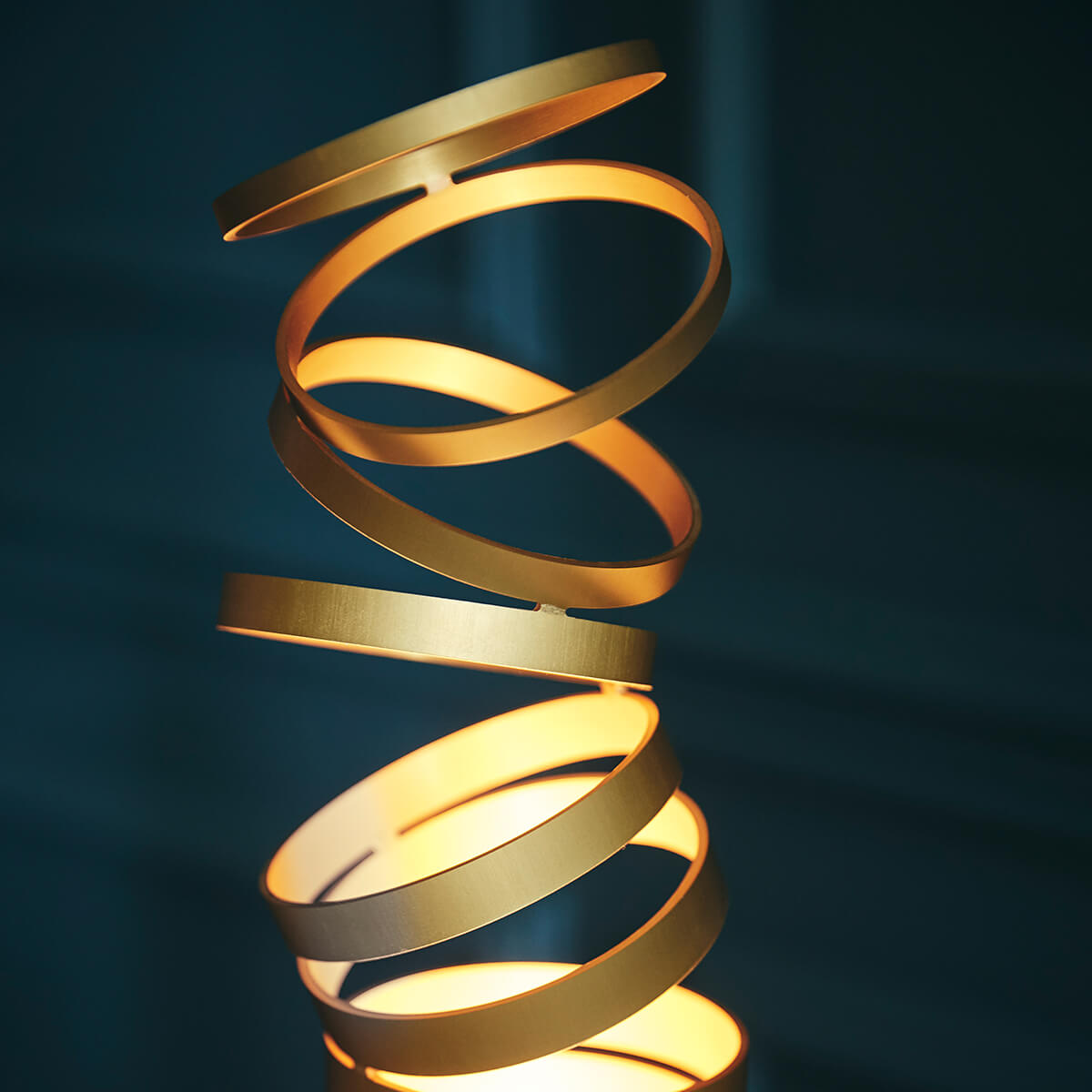- Kunstvolle Tischleuchte, deren Korpus sich nach oben hin aufzulösen scheint