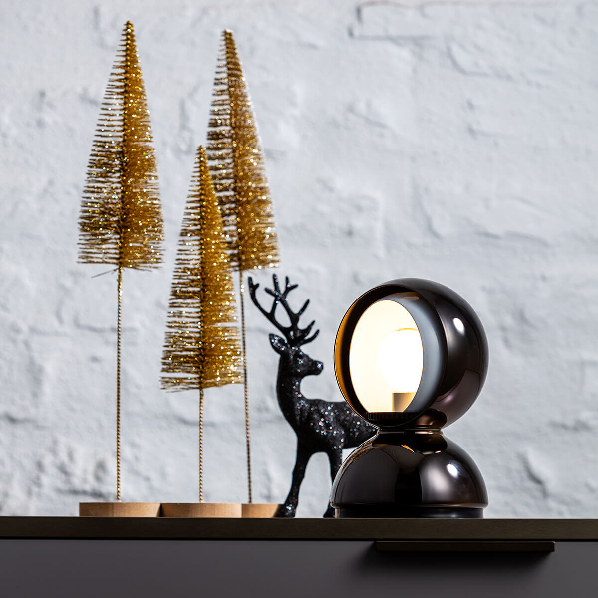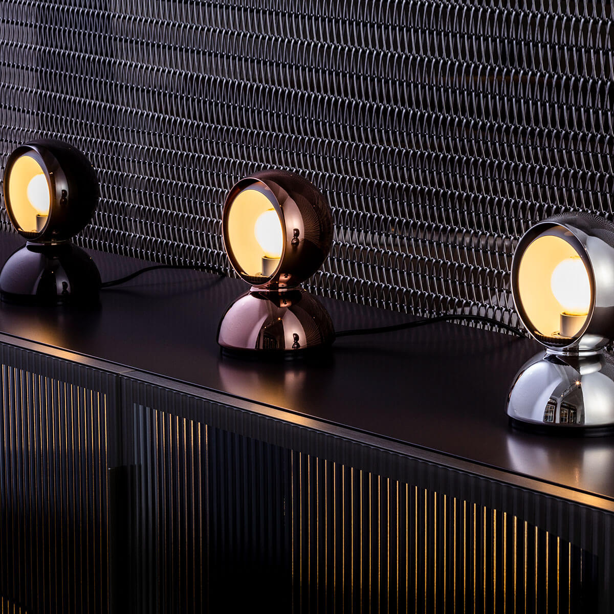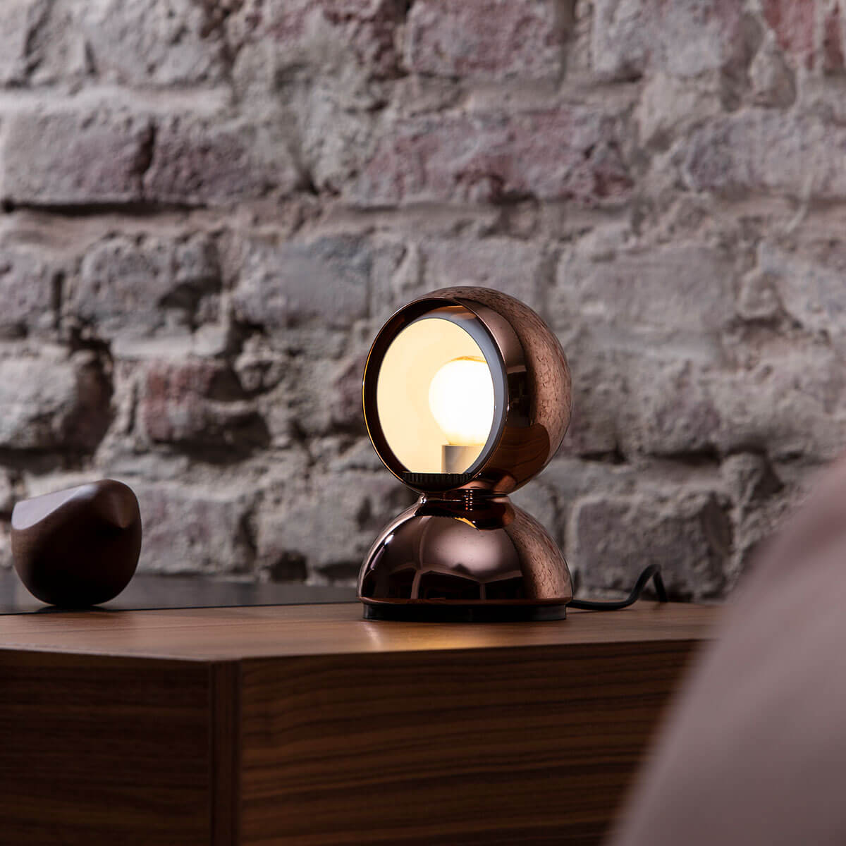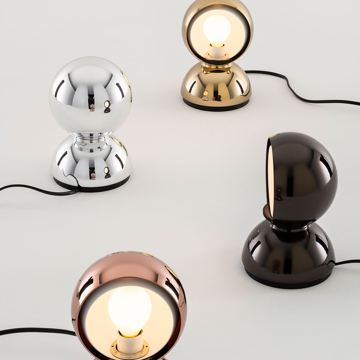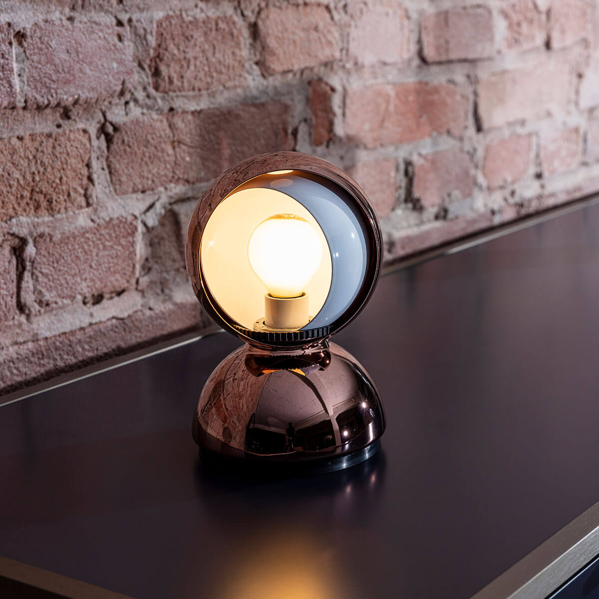 Der Clou des Designs findet sich im kugelförmigen Lampenkopf: ein drehbarer Reflektor, durch den sich Lichtausrichtung und Helligkeit wie bei einem modernen Dimmer manuell regulieren lassen. Dies macht die Artemide Eclisse zu einem raffinierten Lichtobjekt, das auf Nachttischen oder Kommoden unterschiedlichen Nutzen erfüllt: Je nach Reflektorposition erzeugt die Leuchte ein direktes Leselicht oder aber akzentuierendes Indirektlicht.