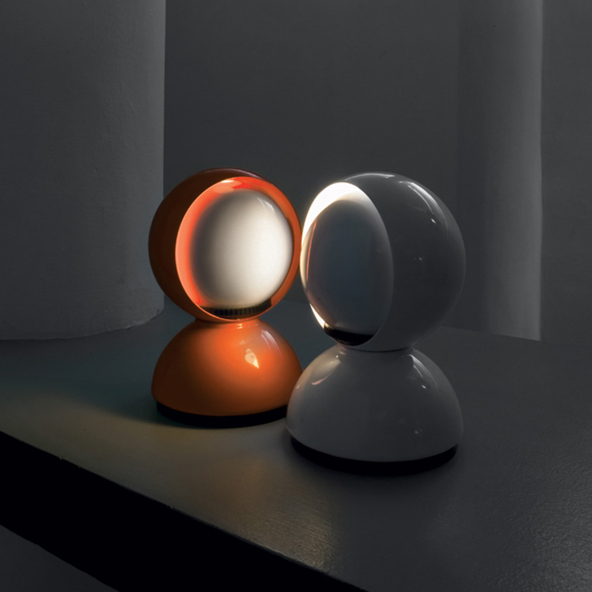 Die kleine Tischlampe ist nicht nur ein dekorativer Blickpunkt im Wohnzimmer und Schlafbereich, sondern eignet sich auch als reizvolle Lichtquelle im Kinderzimmer. Da die Artemide Eclisse über einen E14-Sockel verfügt, können als Leuchtmittel sowohl Glühlampen wie auch energiesparende LED-Retrofits verwendet werden. Darüber hinaus eignen sich die Tischleuchten zur Montage als Wandlampe.