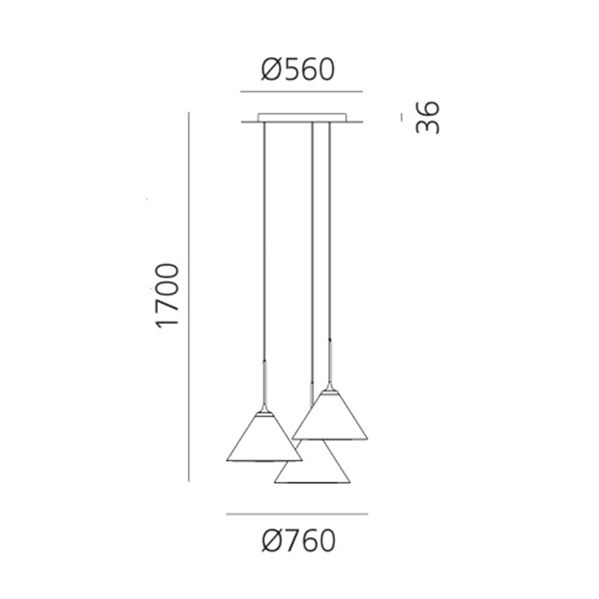 - Schöne Cluster Pendelleuchte mit drei Leuchtenschirmen, befestigt auf einem runden Baldachin