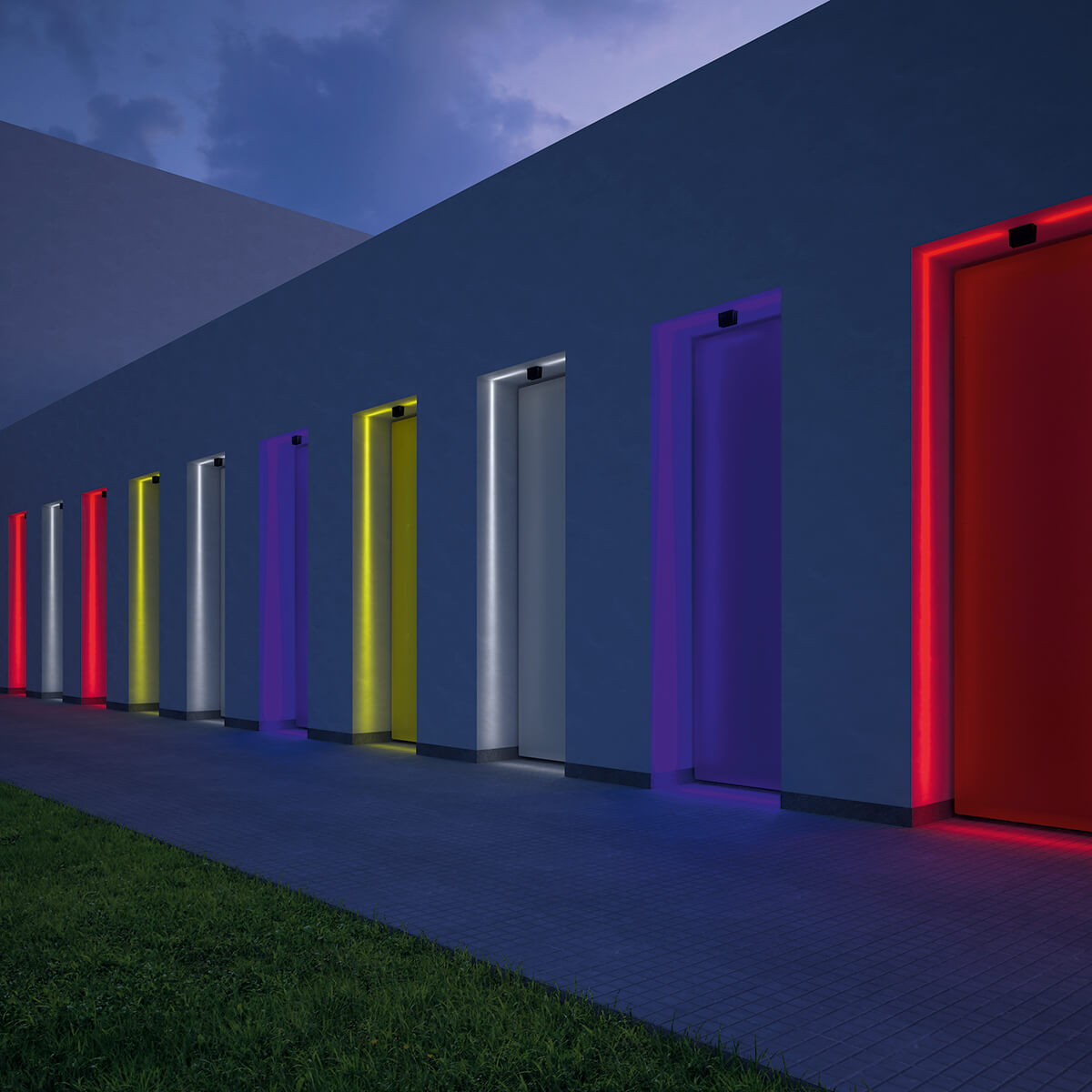 Einzigartige Architekturbeleuchtung, die mit einer einzigen LED ein 360° Lichtprofil zeichnet. Fassaden werden besonders in Scene gesetzt und können dank der RGB LED in Kombination mit mehreren Leuchten ein buntes Lichtszenario schaffen.