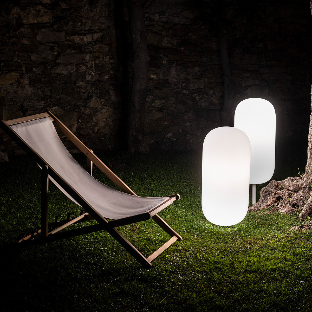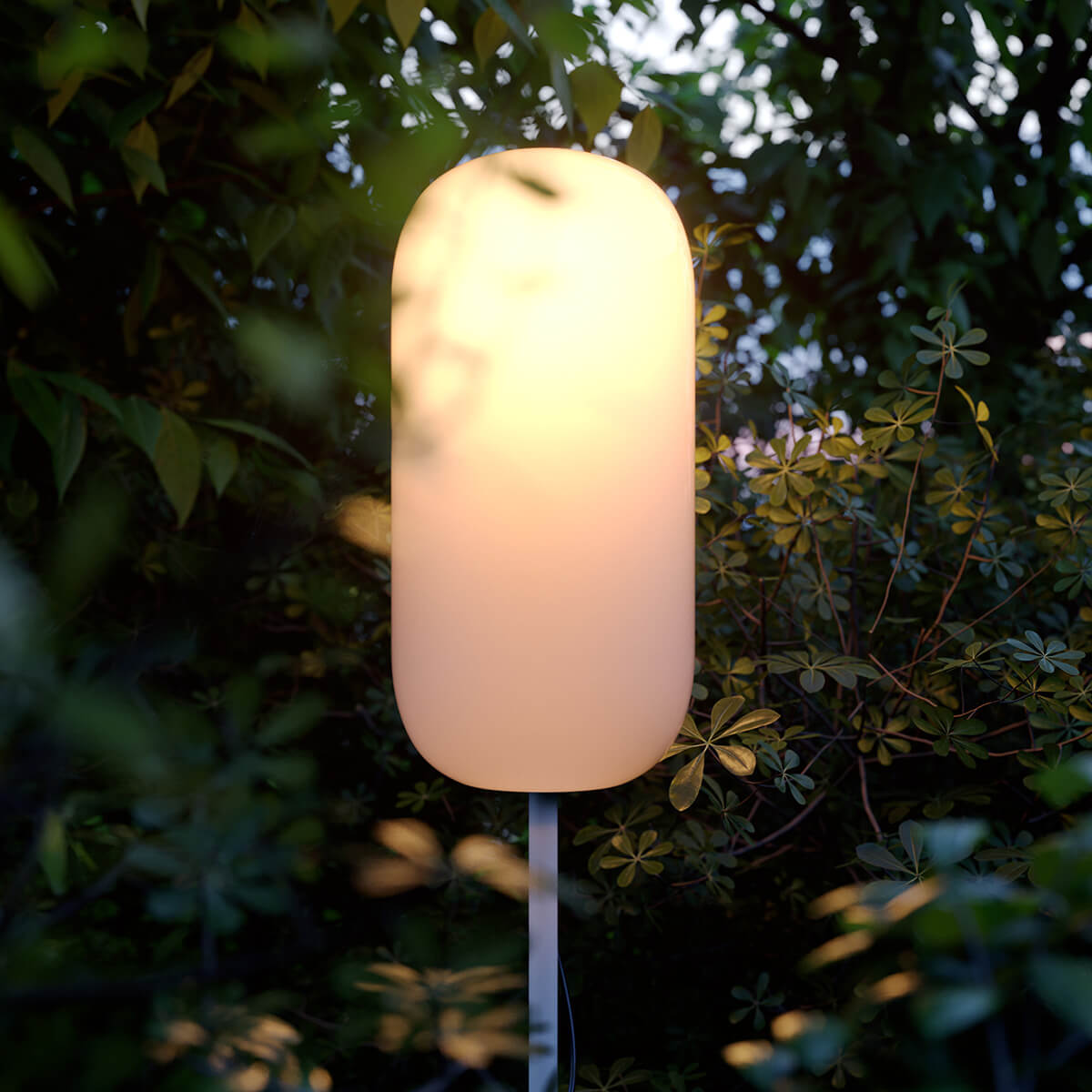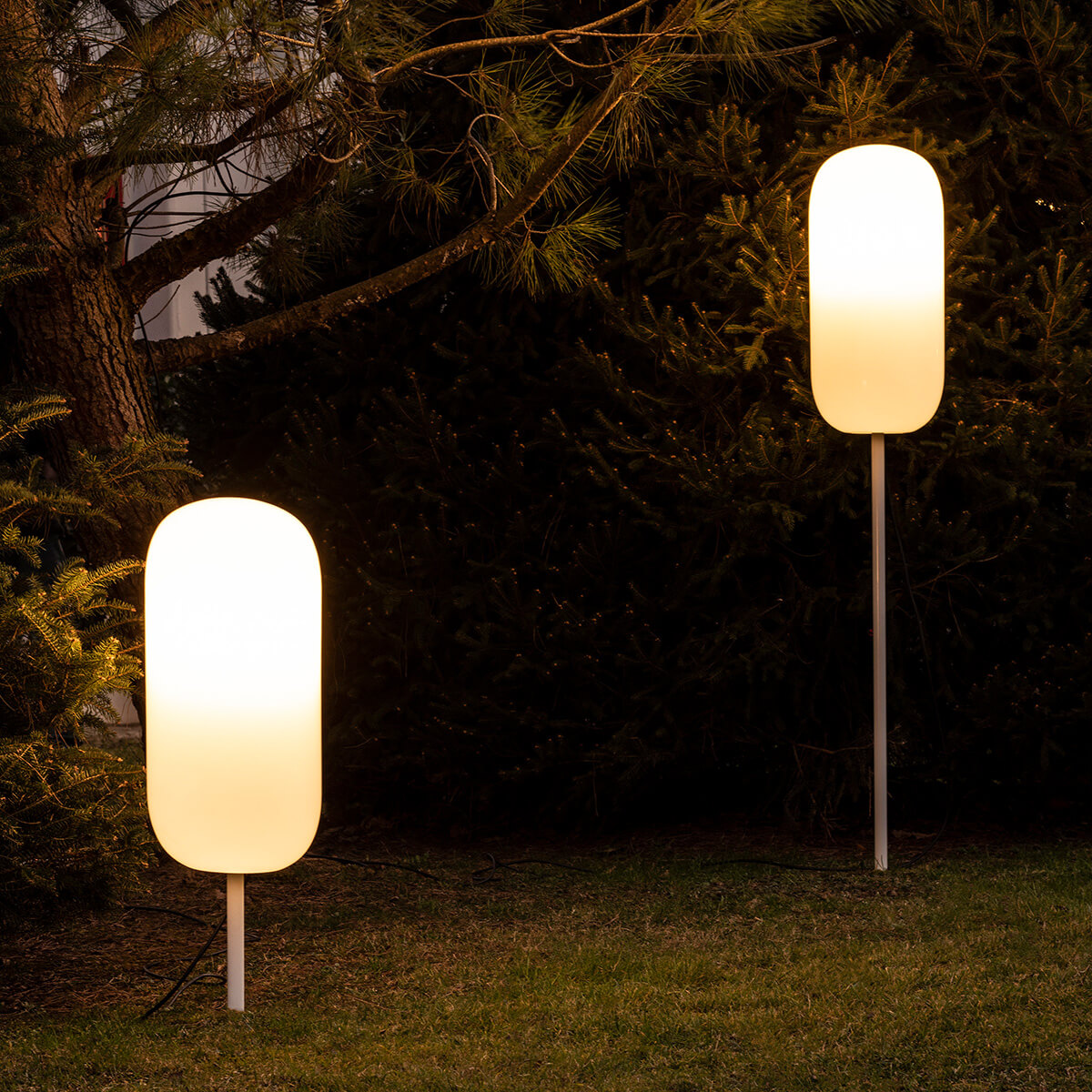 - Sanft gerundete Erdspießleuchte in drei Größen erhältlich