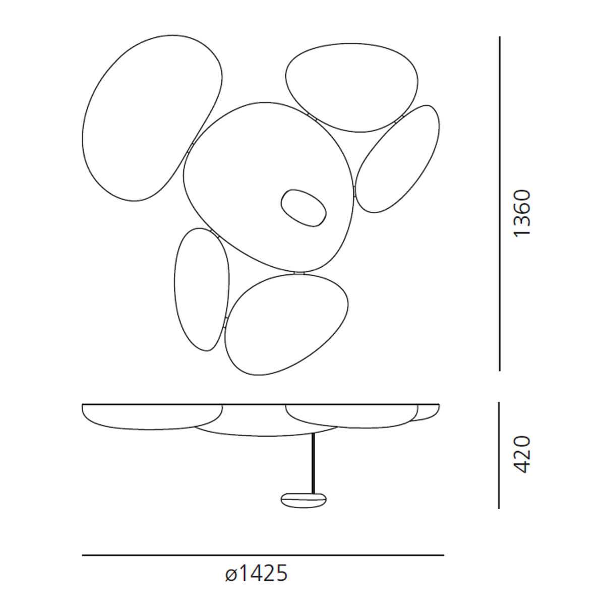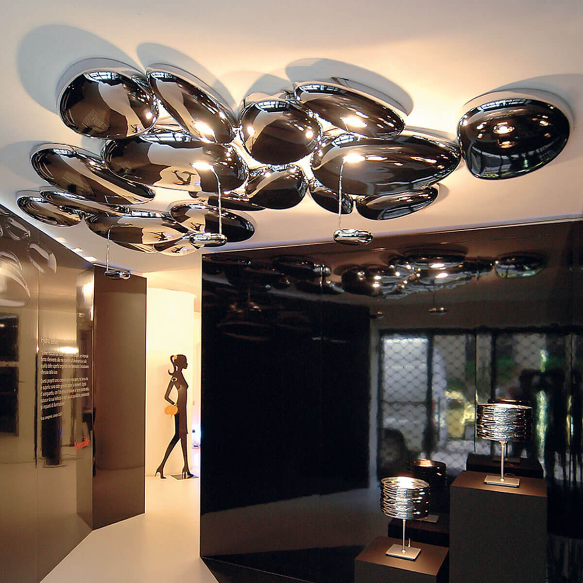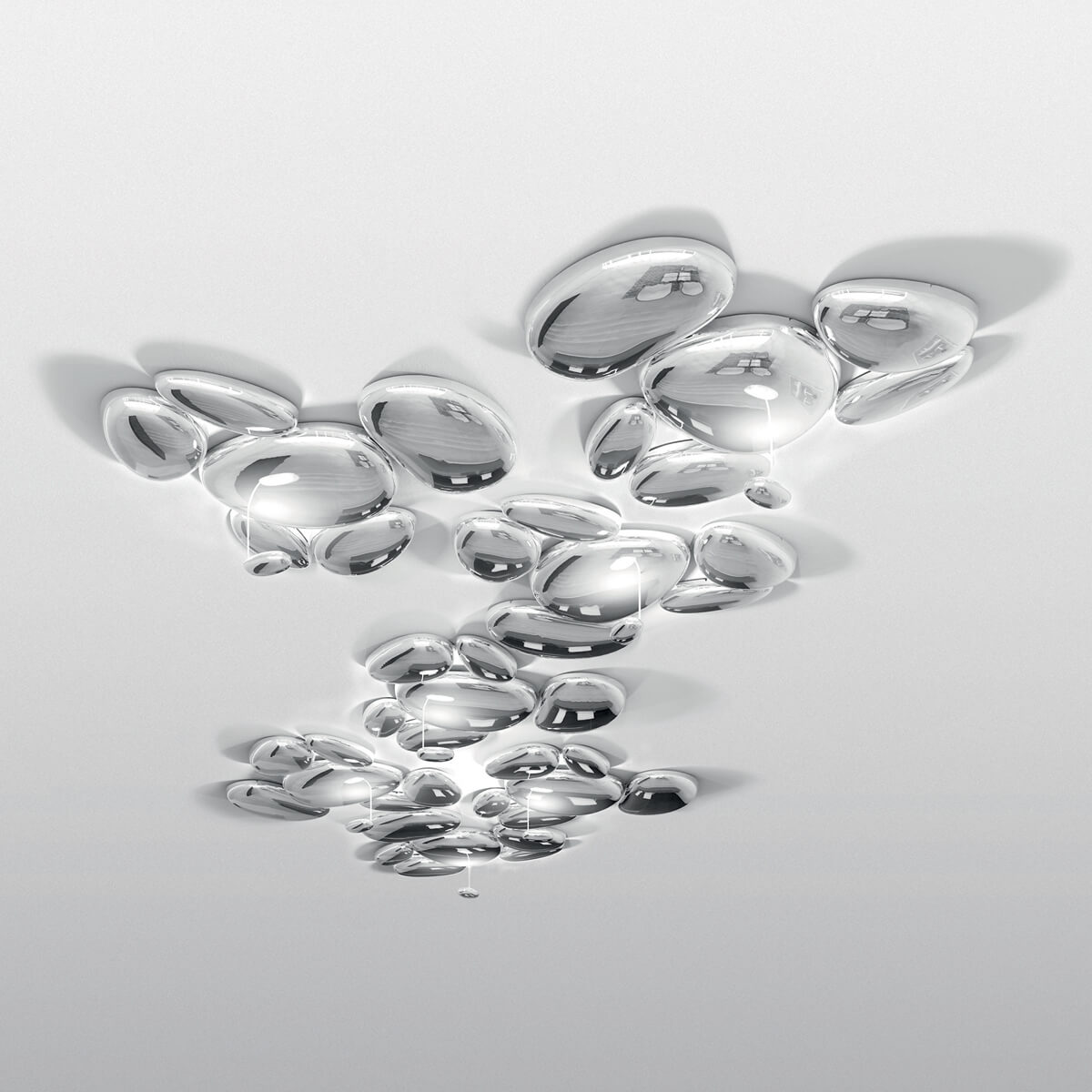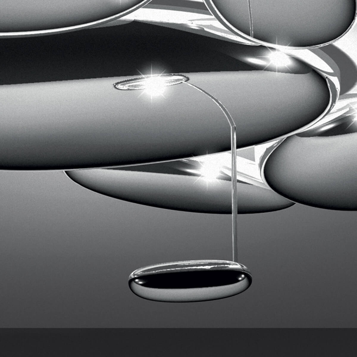 Die Artemide Skydro, eine Kreation des britischen Erfolgsdesigners Ross Lovegrove, ist eine exklusive Lichtskulptur von beeindruckender Plastizität. Elegant geschwungene "Lichtsteine" aus verchromtem Spritzguss-Thermoplast bilden in ihrer Gesamtheit einen "Lichthimmel mit unregelmäßigen, von der Natur inspirierten Formen".