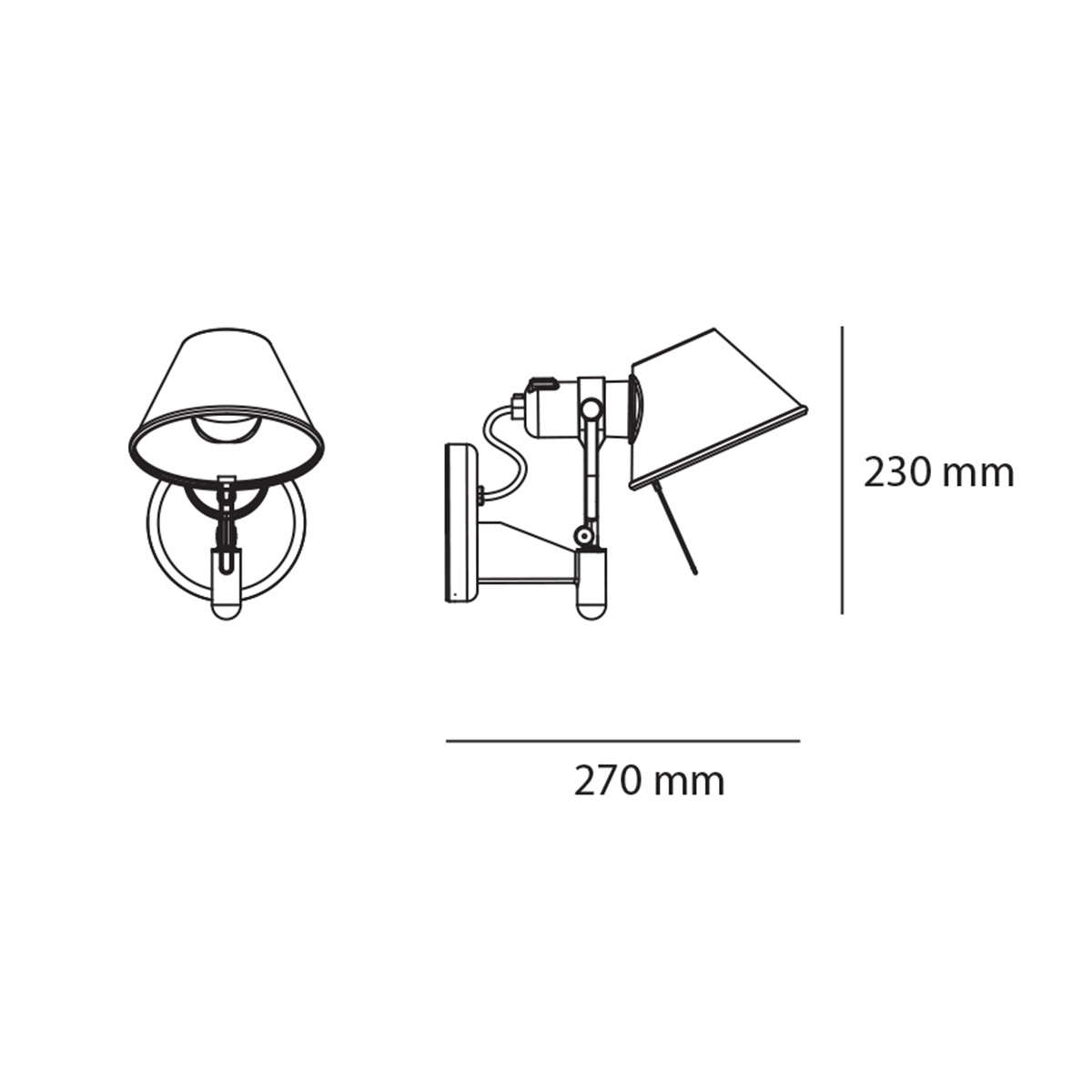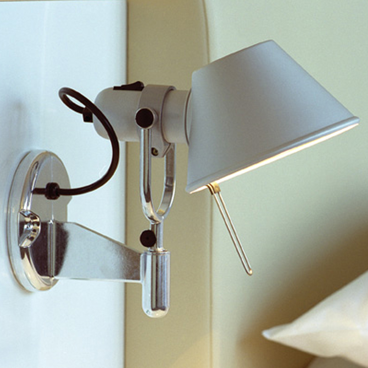Die Artemide Tolomeo Faretto ergänzt die von Michele De Lucchi und Giancarlo Fassina kreierte Leuchtenfamilie Artemide Tolomeo und besticht durch ihre flexible Handhabung und dezente Oberflächengestaltung. Die Wandleuchte bilden eine aus glänzendem Aluminium gefertigte Wandhalterung und der konisch geformte Leuchtenschirm aus matt-eloxiertem Aluminium. Dieser lässt sich in alle Richtungen verstellen und Ihren Wünschen entsprechend ausrichten. Zusätzlich zum direkten, nach unten hin ausgerichteten Lichtausfall gewährleistet eine kleine Öffnung im oberen Bereich des Schirms eine aufwärts strahlende und diffus gestreute Lichtverteilung. Als Leseleuchte neben dem Bett macht sich die Artemide Tolomeo Faretto ebenso gut wie als funktionale Akzentleuchte in Küche oder Flur.