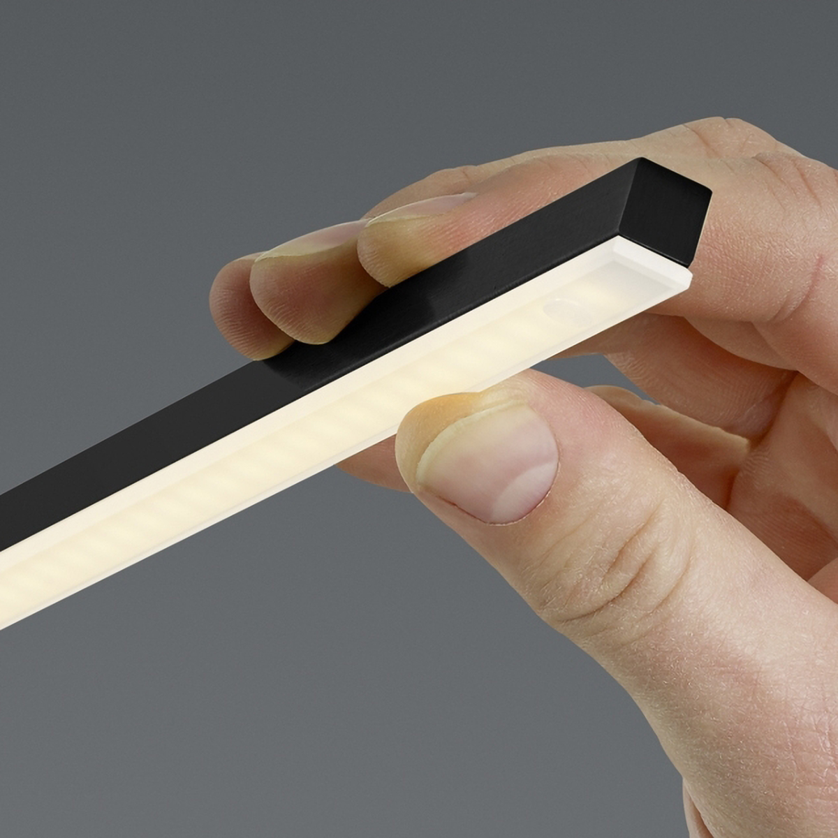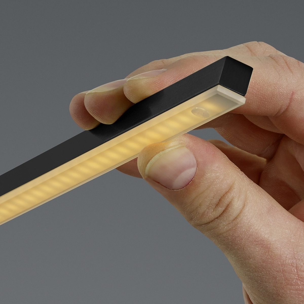 Minimalistisch im Design, fortgeschritten in der Lichttechnologie: Das Dimmen der Bankamp Slim LED Pendelleuchte erfolgt mittels Kippens des Leuchtenschirms (Vertical dim). Ausgelöst wird der Dimm-Impuls bereits ab einer Neigung von 12°. Das Herunterdimmen erfolgt geräuschlos und absolut flackerfrei – und evoziert dank Dim-to-Warm-Funktion einen wärmer werdenen Lichteffekt.