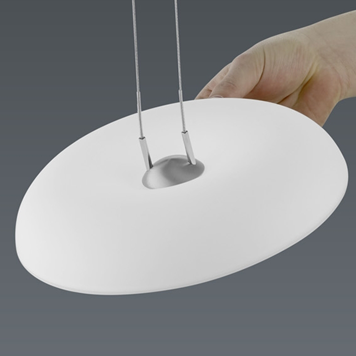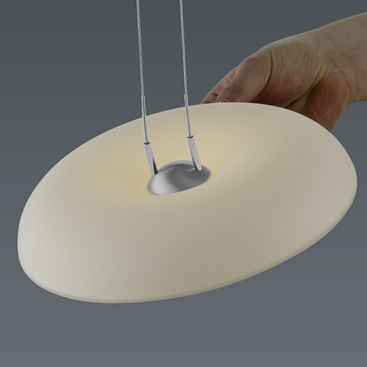 Das Dimmen des Bankamp LED-Pendels erfolgt via Kippen des Leuchtenschirms (Vertical dim-Funktion). Ausgelöst wird der Dimm-Impuls bereits ab einer Neigung von 12°. Dank integrierter Memory-Funktion bleibt die zuletzt eingestellte Lichtstärke auch nach Ausschalten der Hängeleuchte gespeichert. Bitte beachten Sie, dass bei dem Produkt kein Wanddimmer vorgeschaltet werden darf!