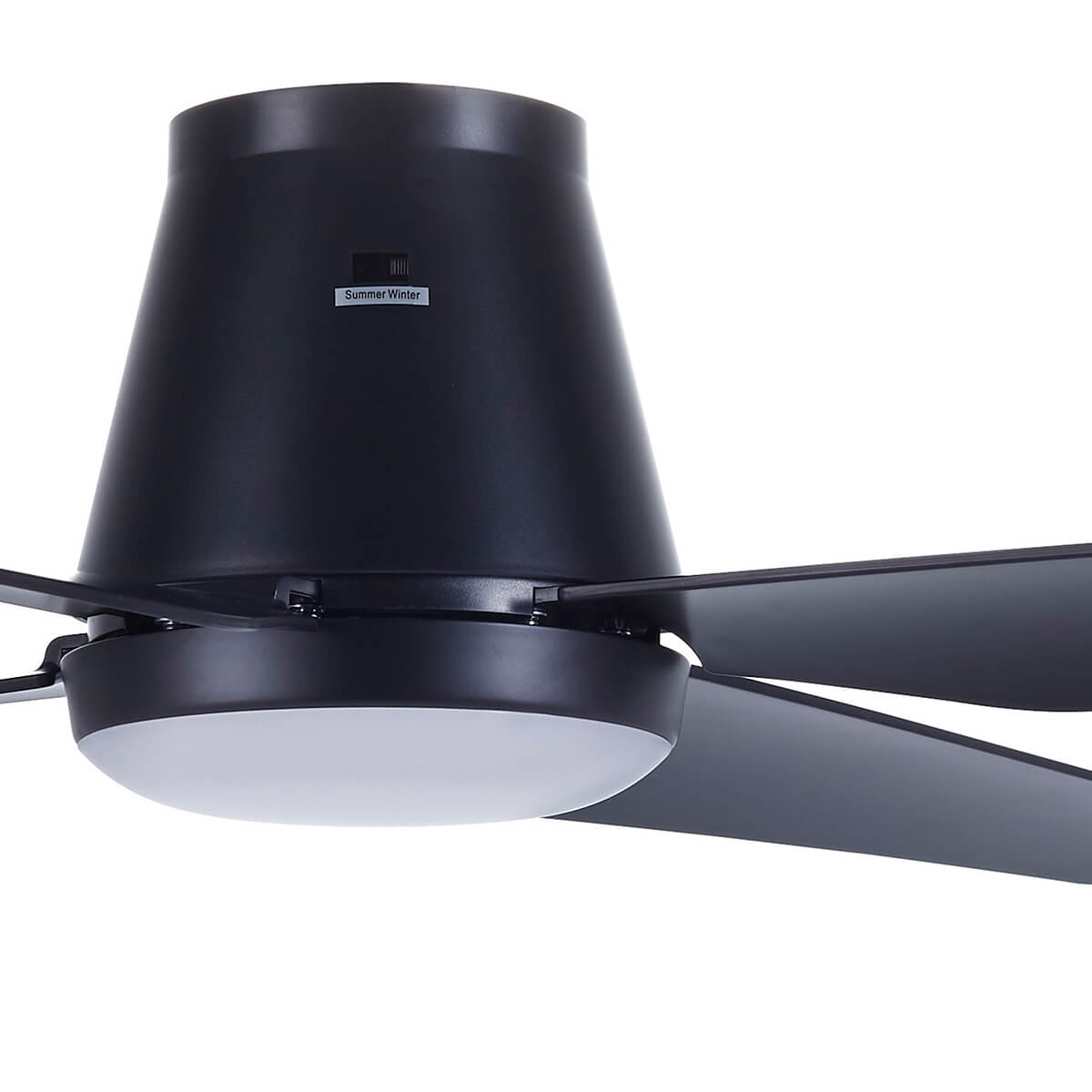 Mit seinen drei Geschwindigkeitsstufen, die zwischen 148 und 245 Umdrehungen pro Minute liefern, garantiert der Aria CTC eine effektive Luftverteilung. Der maximale Luftstrom von 156 m³/min sorgt auch an heißen Tagen für eine erfrischende Brise. Über die mitgelieferte Fernbedienung lassen sich Licht und Geschwindigkeiten bequem aus der Ferne steuern. Der Schiebeschalter am Gehäuse ermöglicht den einfachen Wechsel zwischen Sommer- und Winterbetrieb, was zur Energieeffizienz beiträgt, indem im Winter die warme Heizungsluft gleichmäßig verteilt wird.