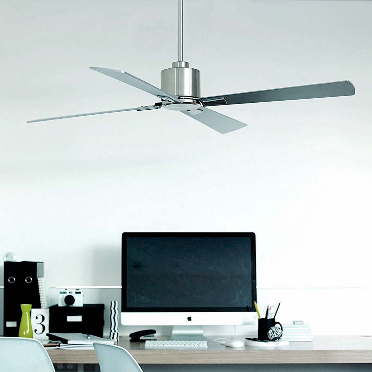 Das Design ist modern und vielseitig, passend zu unterschiedlichen Einrichtungsstilen. Das Gehäuse besteht aus robustem Metall, die Flügel sind aus hochwertigem Schichtholz gefertigt. Verfügbar ist der Deckenventilator Climate in drei eleganten Ausführungen: klassisches Schwarz, strahlendes Weiß und gebürstetes Chrom mit silberfarbenen Flügeln.