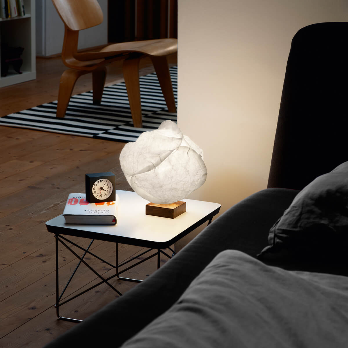 Bei der Babycloud-45 von Belux handelt es sich um ein bezauberndes Lichtobjekt, das sich vor allem zur Beleuchtung auf Sideboars, Kommoden oder Nachttischen eignet. Die sympathische Tischlampe, von dem amerikanischen Architekten Frank Gehry kreiert, bezeugt das Interesse des Baukünstlers am Material Papier und an der Formensprache japanischer Leuchtenkreationen.
